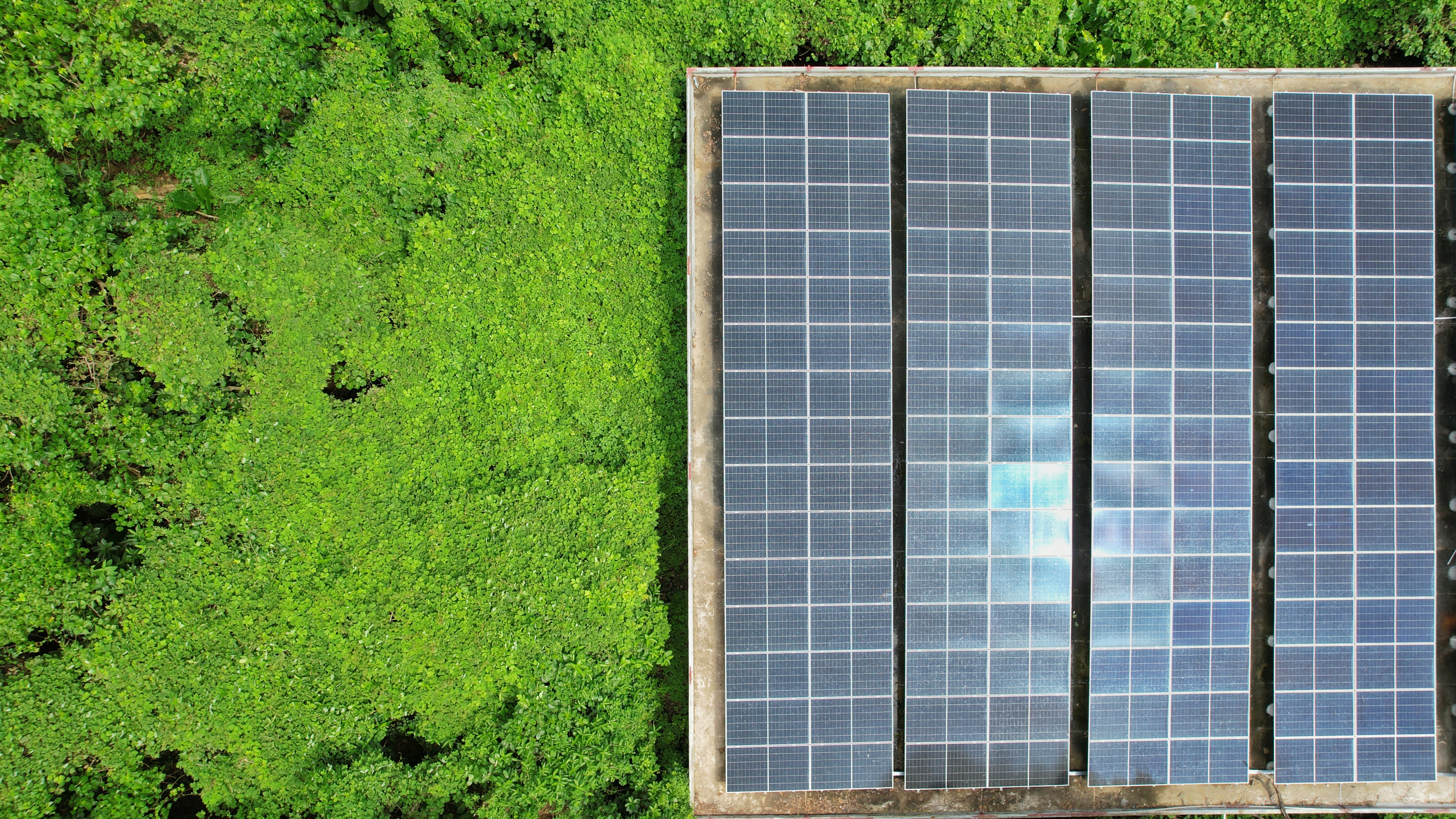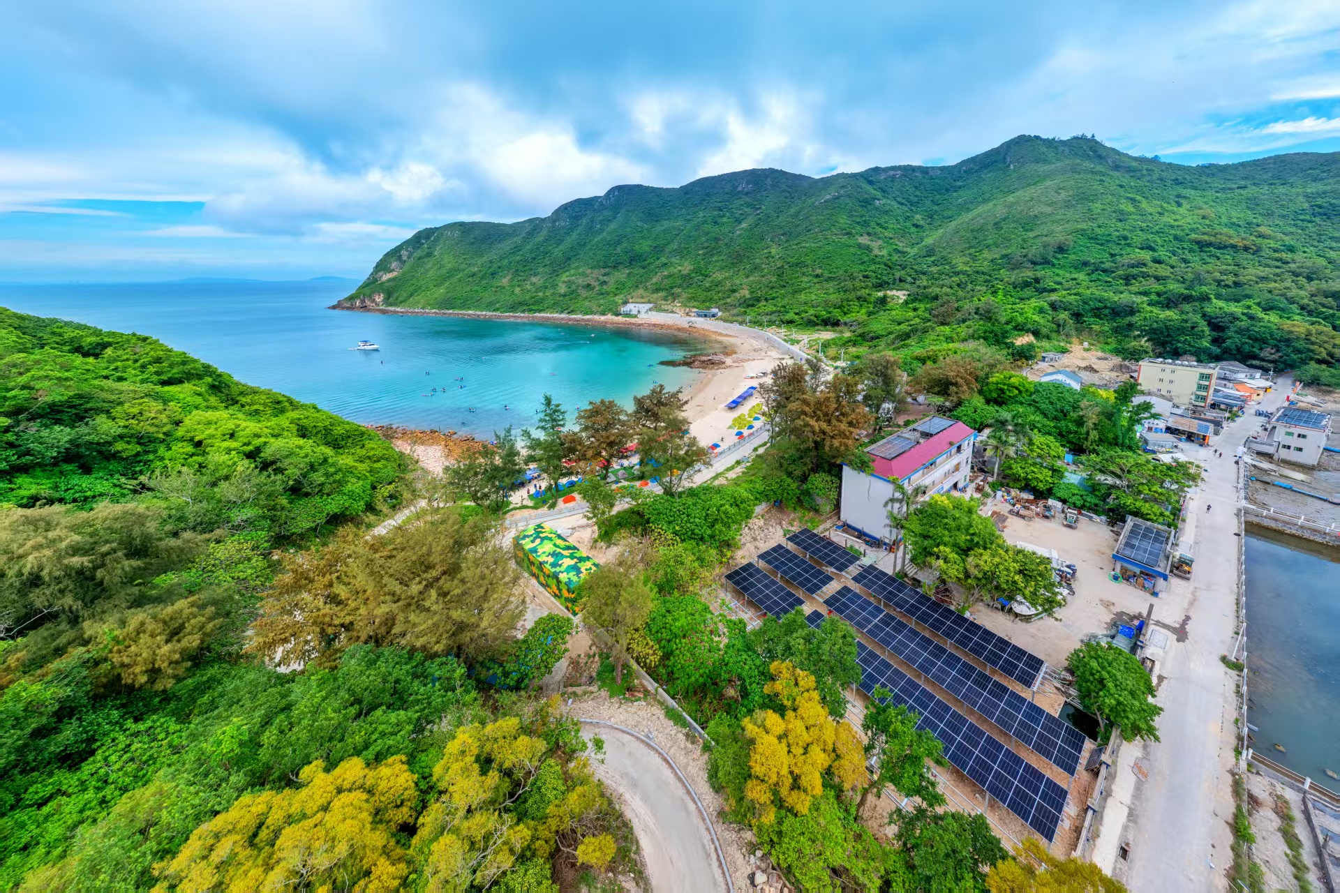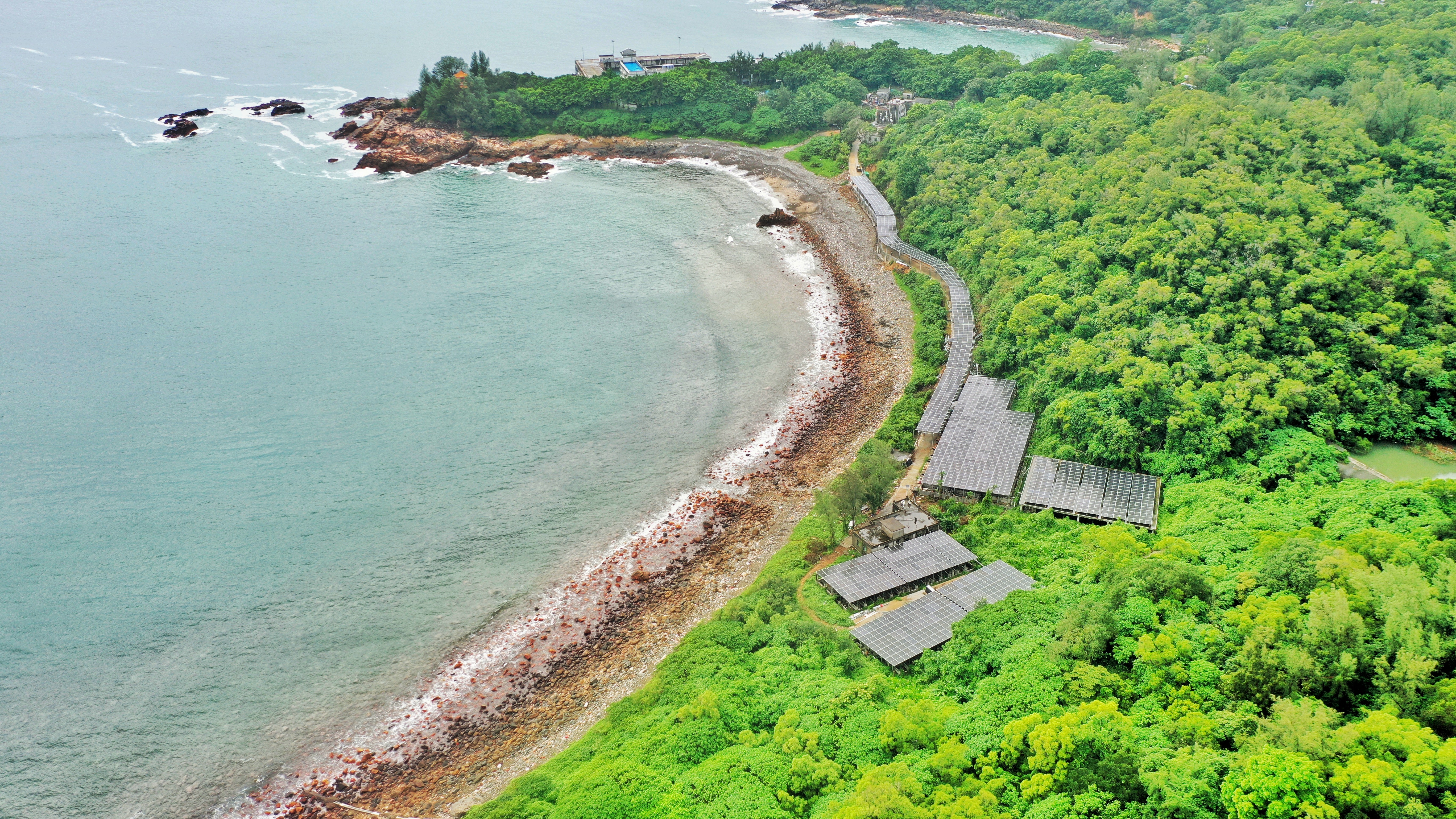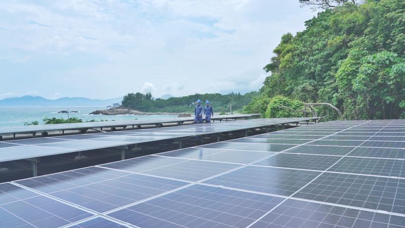 惠州供電局在三門(mén)島建設(shè)的光伏發(fā)電設(shè)施與海島周邊的綠植融為一體。