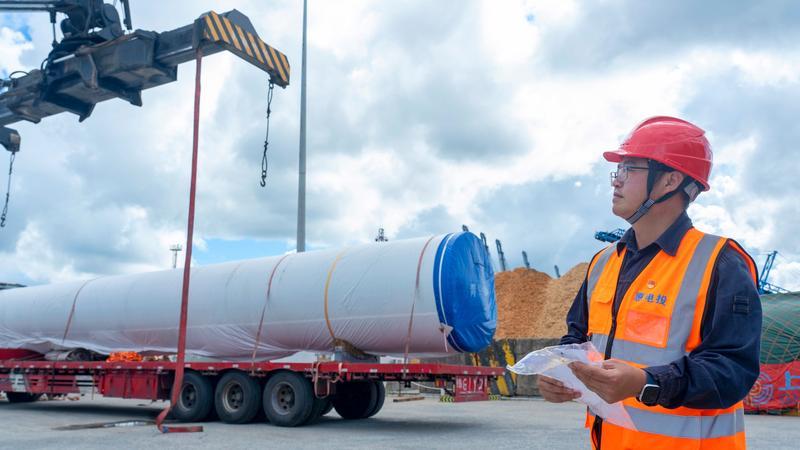 當(dāng)儲(chǔ)能裝置在海島穩(wěn)穩(wěn)“扎根”,建設(shè)團(tuán)隊(duì)又馬不停蹄奔赴新戰(zhàn)場(chǎng)——面對(duì)27米長(zhǎng)葉片、29噸重的“巨無(wú)霸”風(fēng)機(jī),既要安全運(yùn)抵山頂,又不傷一草一木,這道“綠色運(yùn)輸”必答題,該如何破題?惠州市煥能電氣安裝有限公司相關(guān)負(fù)責(zé)人楊威介紹:“我們結(jié)合三門(mén)島的地形地貌,對(duì)常規(guī)仰舉車(chē)進(jìn)行了設(shè)計(jì)改造,通過(guò)提升抬舉角度、增設(shè)旋轉(zhuǎn)功能,多途徑調(diào)整風(fēng)機(jī)葉片在運(yùn)輸過(guò)程中的姿態(tài),巧妙避讓‘蔥蘢綠意’,真正做到綠色籌劃、綠色落地!