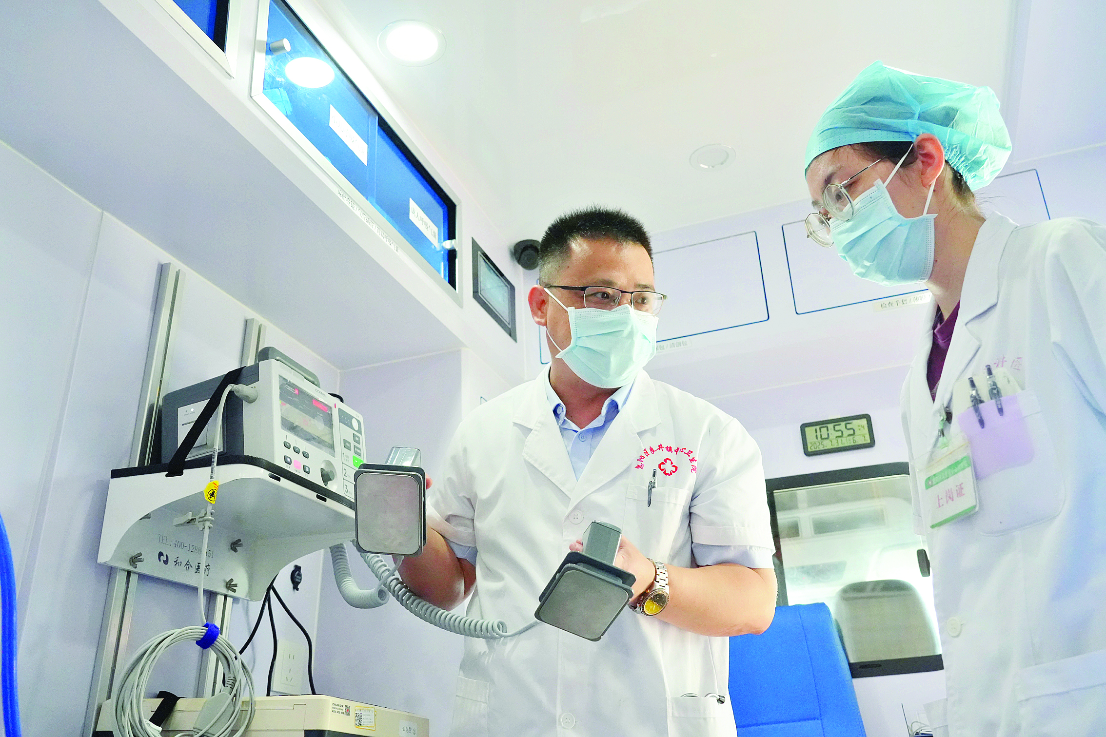 羅志敏迅速組織專項培訓(xùn)。呼吸機的工作原理、參數(shù)設(shè)置、不同病情下的應(yīng)用要點;除顫儀的操作時機、能量選擇、注意事項……結(jié)合多年經(jīng)驗,他通過現(xiàn)場模擬不同類型的心律失常場景,演示如何判斷除顫時機、選擇合適的能量以及講解操作時的注意事項。