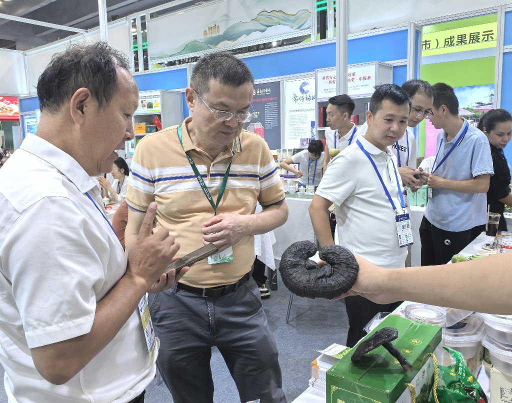 現(xiàn)場展出的靈芝受到關(guān)注。