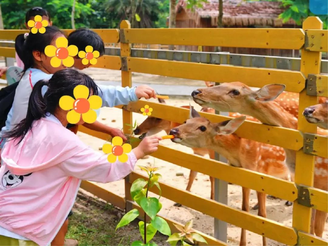 暑假班的孩子們觀察并喂食動(dòng)物。