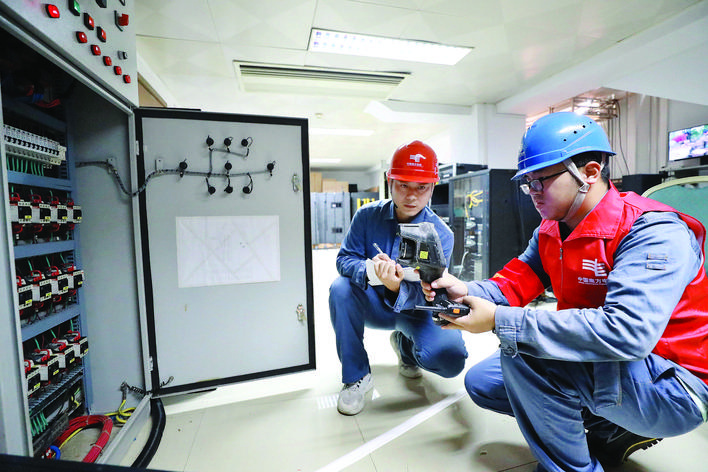 惠州供電工作人員檢查設(shè)備運(yùn)行狀況;葜萑?qǐng)?bào)記者楊建業(yè) 攝