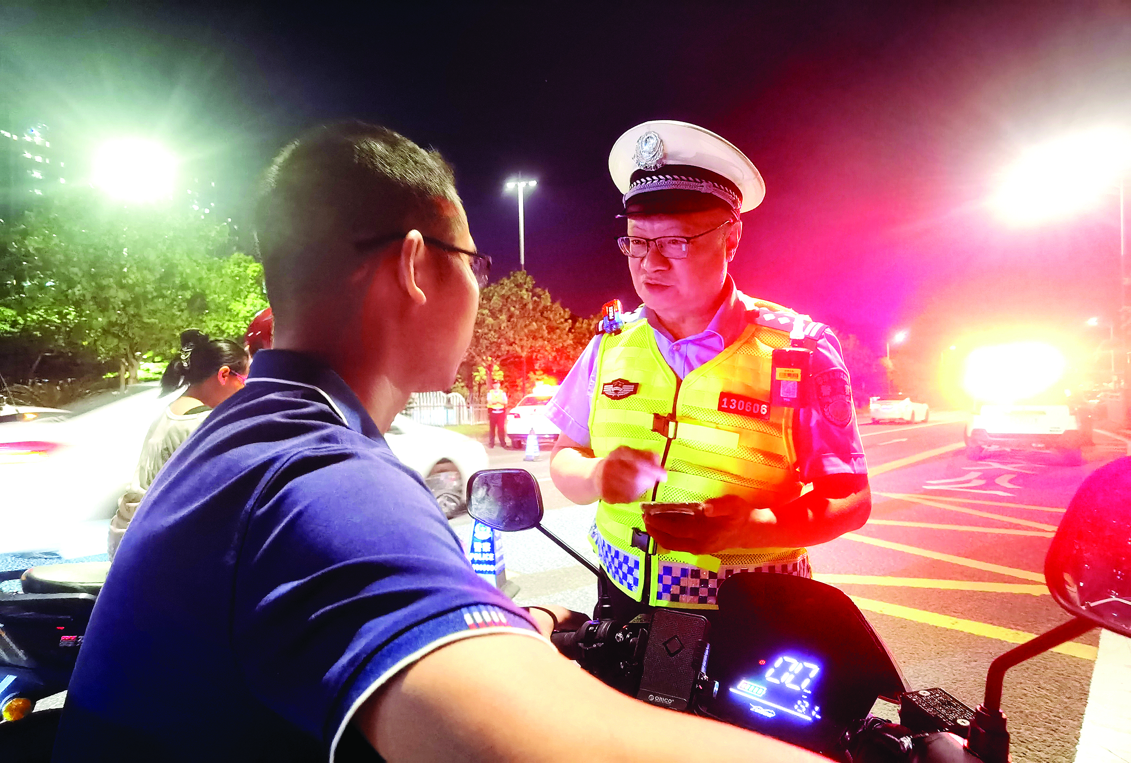 黃曉陽堅(jiān)守夜查一線,查處各類交通違法行為。