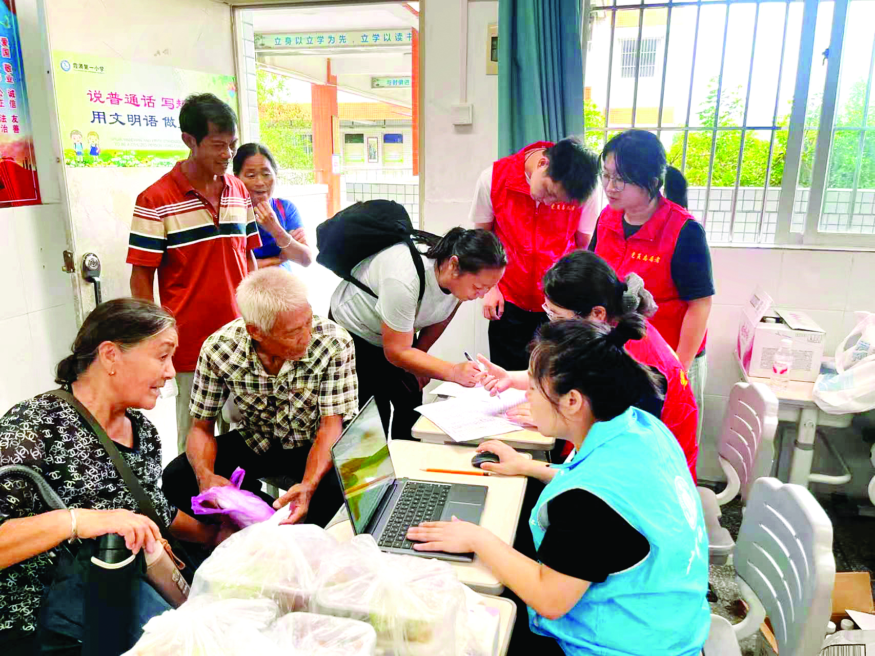 9月23日,博羅縣鎮(zhèn)村干部迅速下沉各村(社區(qū)),全面排查轄區(qū)的重點(diǎn)區(qū)域場所和重點(diǎn)人群,妥善轉(zhuǎn)移群眾,開放安全避難場所!鞍⑹澹钪匾,把門鎖好,跟我們走!碑(dāng)天下午,博羅縣公莊鎮(zhèn)壩子村的村干部、社工開展進(jìn)一步巡查時,發(fā)現(xiàn)獨(dú)居老人許伯仍在家中未轉(zhuǎn)移。經(jīng)了解發(fā)現(xiàn),老人覺得臺風(fēng)還沒來,又怕家里丟東西,不愿轉(zhuǎn)移。于是,村干部對其進(jìn)行反復(fù)勸說,成功將老人勸離,安排到就近親戚家暫住。當(dāng)晚,在博羅縣園洲鎮(zhèn)九潭社區(qū)臨時轉(zhuǎn)移安置點(diǎn)內(nèi),被轉(zhuǎn)移安置的群眾領(lǐng)取了熱乎的晚餐,有序就餐。