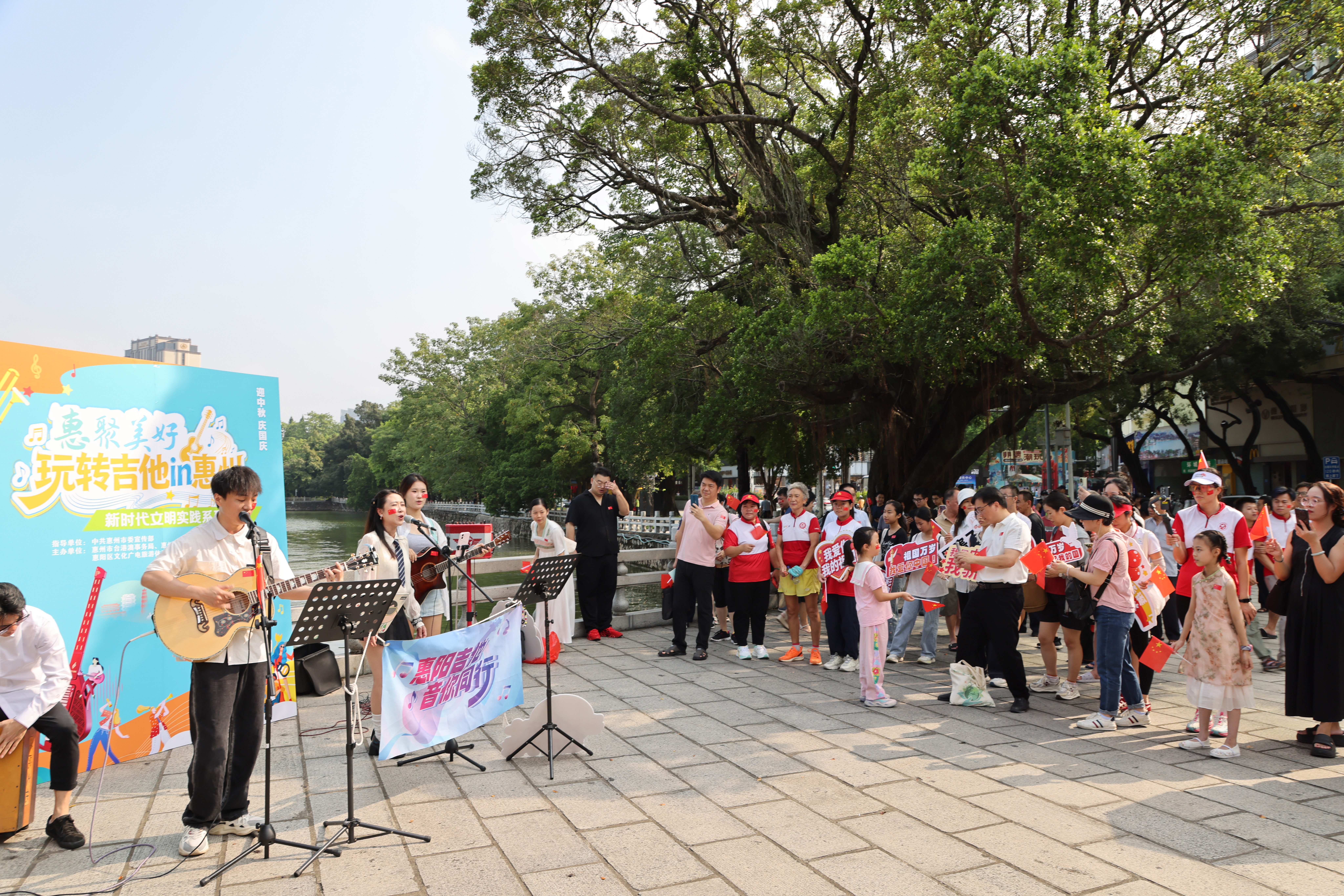 這是“惠聚美好”新時(shí)代文明實(shí)踐活動(dòng)——“玩轉(zhuǎn)吉他in惠州”國慶吉他快閃系列活動(dòng)首場活動(dòng),吸引眾多市民游客參與,點(diǎn)燃國慶歡樂熱潮。