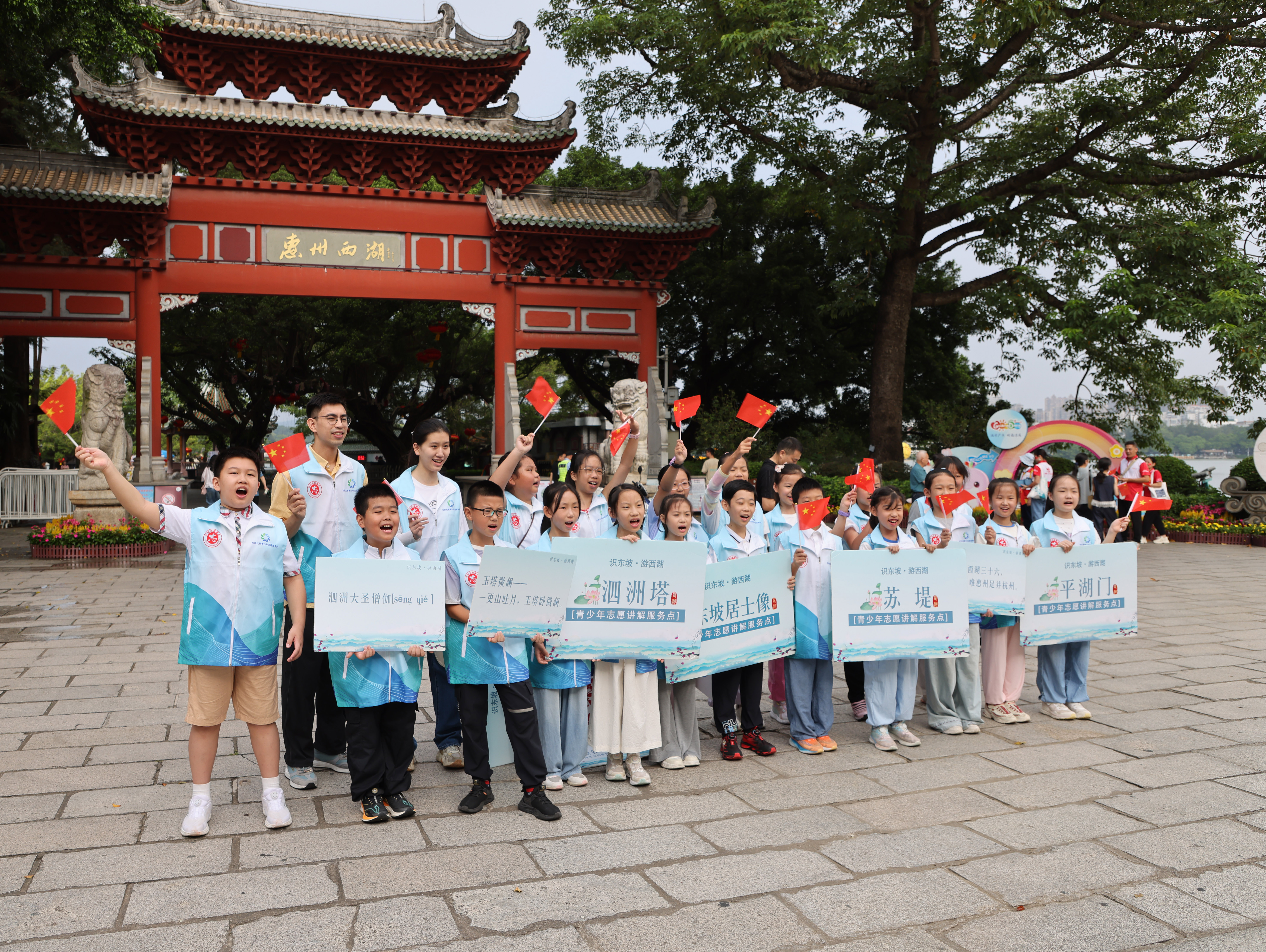 繼今天上午惠州西湖平湖門活動(dòng)圓滿結(jié)束,今天下午17:00-18:00,第二場快閃活動(dòng)將于市民樂園大草坪舉行,期待市民游客共同參與,為國慶喝彩,祖國祝福。