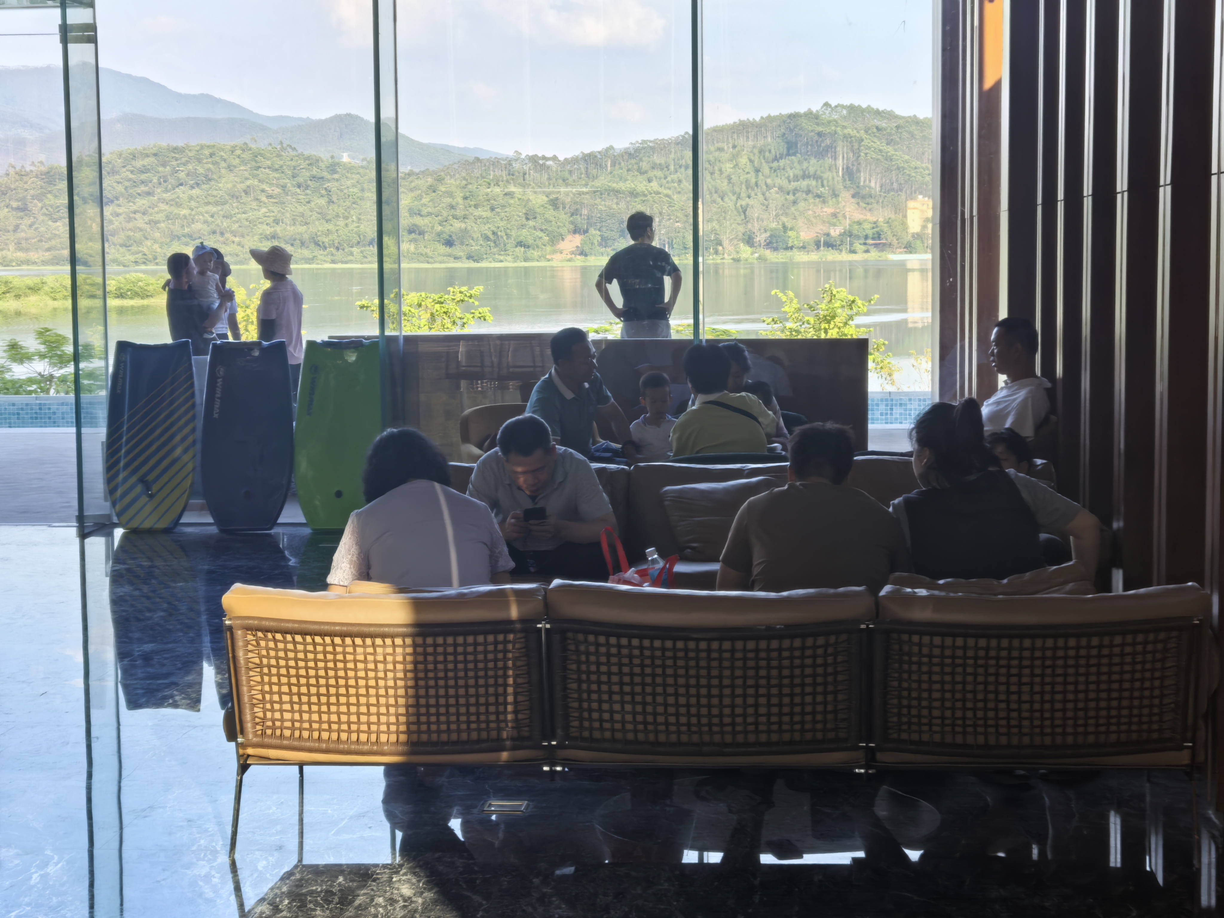 “喝著冰鎮(zhèn)果茶,望著窗外的藍天白云,碧波蕩漾的水庫面,頓感治愈、放松。”來自深圳的戶外運動愛好者阿輝盡情享受著這里的一切。