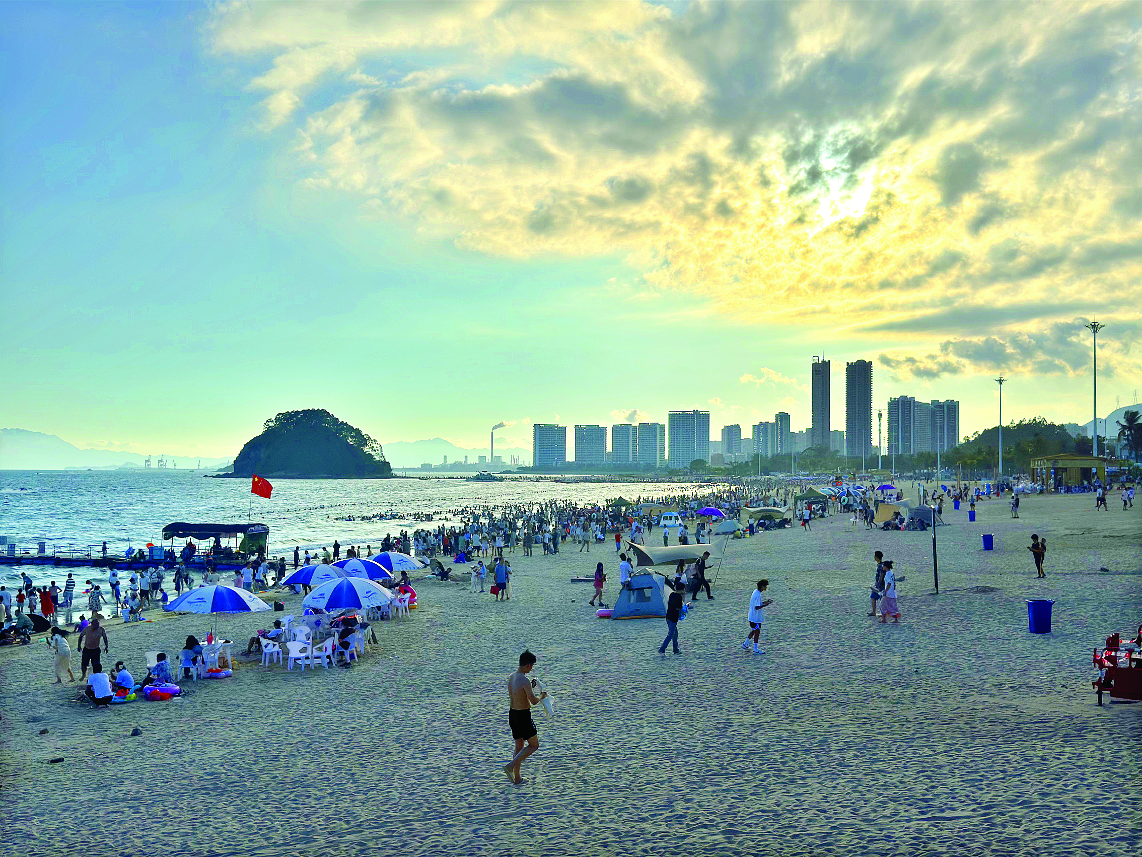 大亞灣黃金海岸游人如織;葜萑請笥浾唿S旭新 攝
