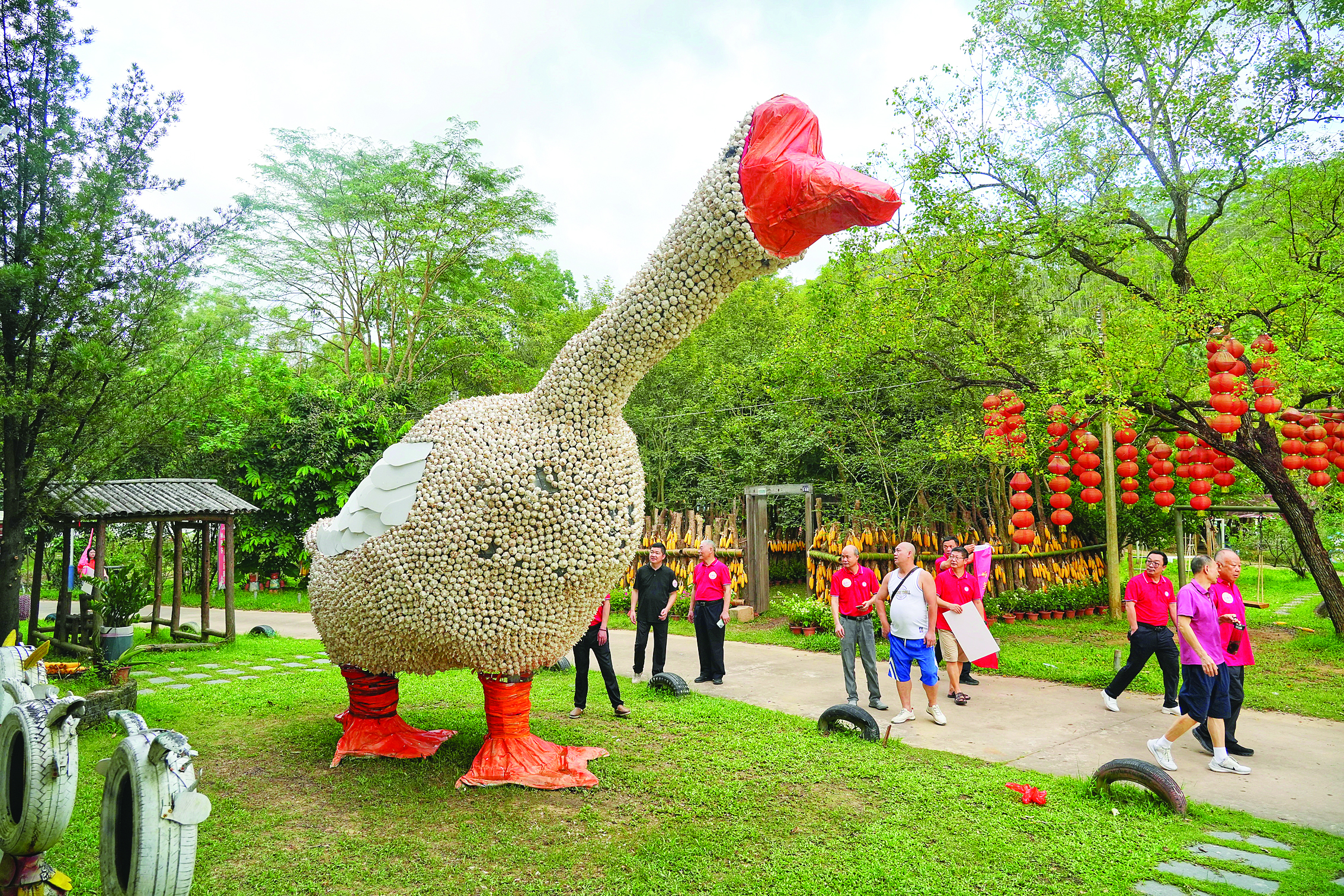 龍門縣龍城街道城西村的百果里果旅綜合體內(nèi),人們歡樂地慶祝豐收。