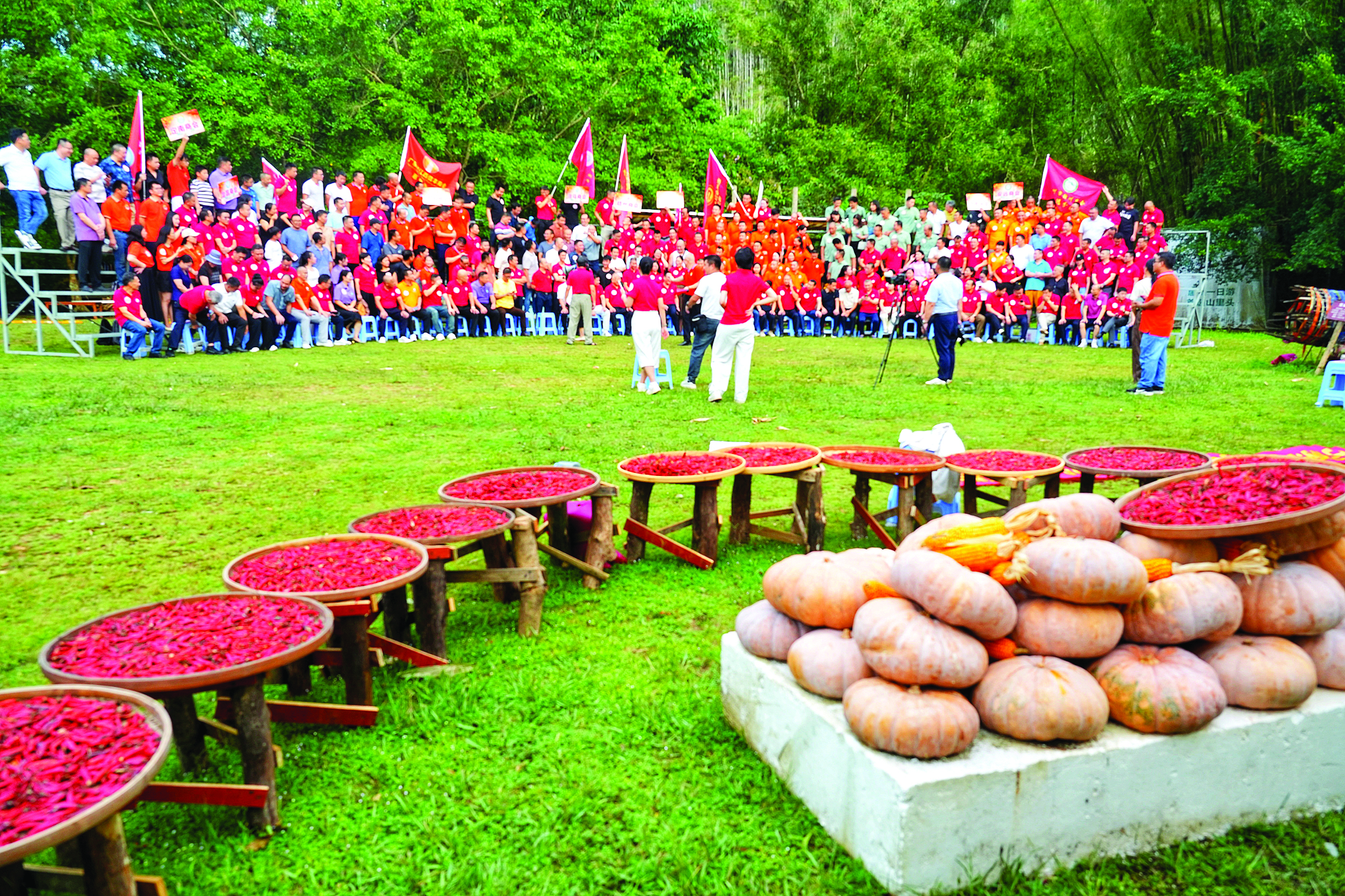 一串串火紅的辣椒“繡”成巨幅國旗。