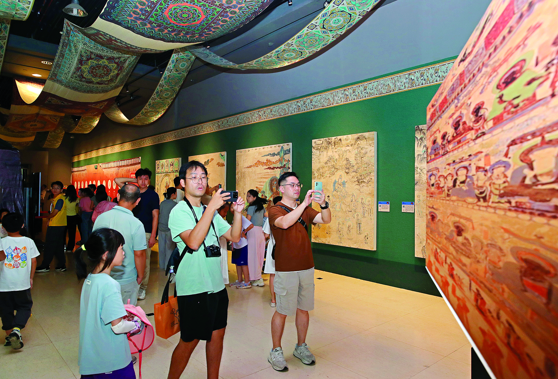 市民游客在惠州博物館參觀敦煌壁畫藝術(shù)展。 惠州日?qǐng)?bào)記者鐘暢新 李松權(quán) 劉煒煒 攝