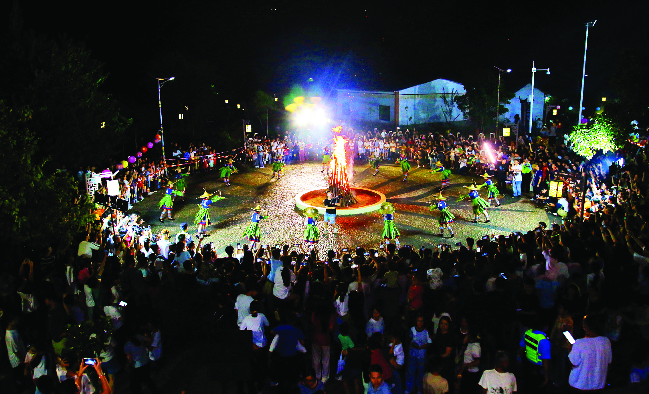 10月6日晚,龍門縣藍田瑤族鄉(xiāng)藍田村文化廣場人潮如織,一年一度的“舞火狗”少女成年禮在這里舉行;葜萑請笥浾唿S宇翔 特約通訊員黃偉光 攝