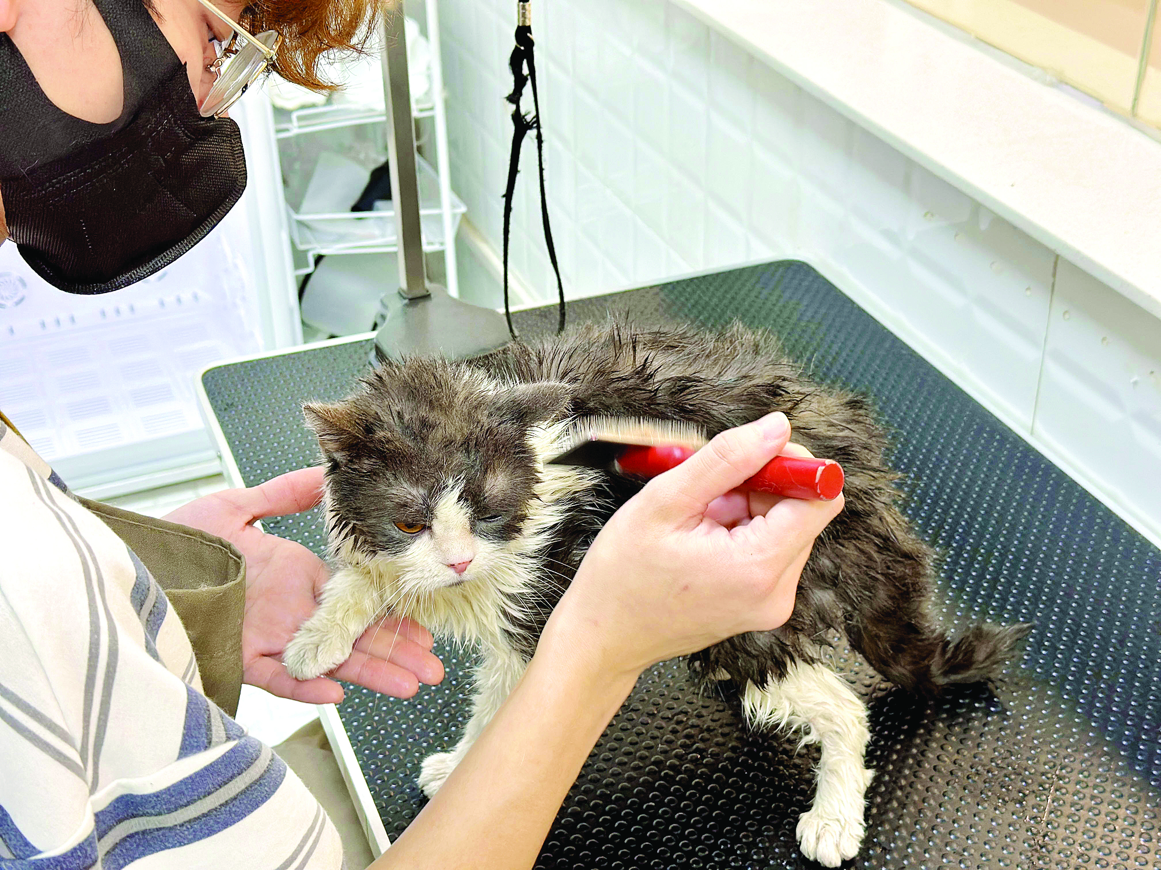 寵物生活館工作人員在為寄養(yǎng)萌寵做洗護(hù);葜萑?qǐng)?bào)記者游璇鈺 攝