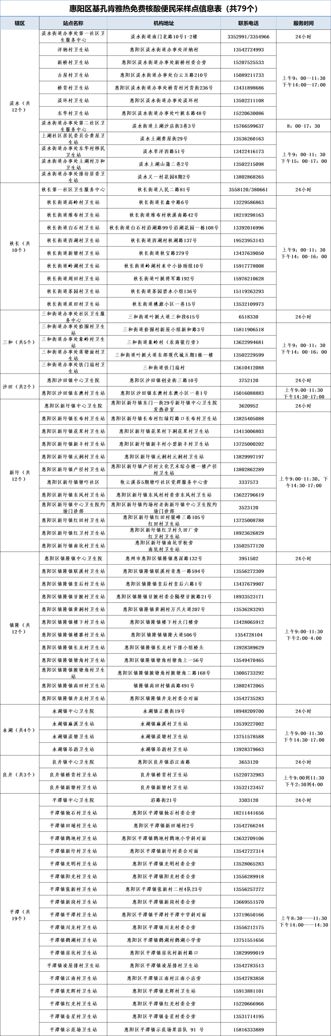 惠陽(yáng)區(qū)基孔肯雅熱核酸便民采樣信息表