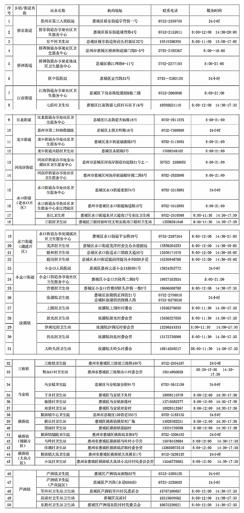 來源:惠城區(qū)衛(wèi)生健康局、惠陽(yáng)區(qū)衛(wèi)生健康局、惠州大亞灣開發(fā)區(qū)管委會(huì)教育文化衛(wèi)生健康局、惠東縣衛(wèi)生健康局