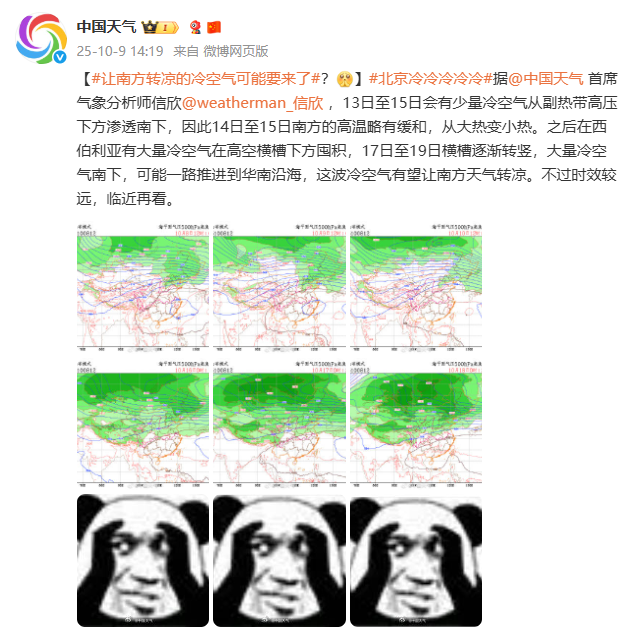 據(jù)@中國天氣,在冷空氣和陰雨天氣的影響下,10月8日東北、華北等地出現(xiàn)了6℃~14℃的降溫,河北北部局地降溫超過了15℃。