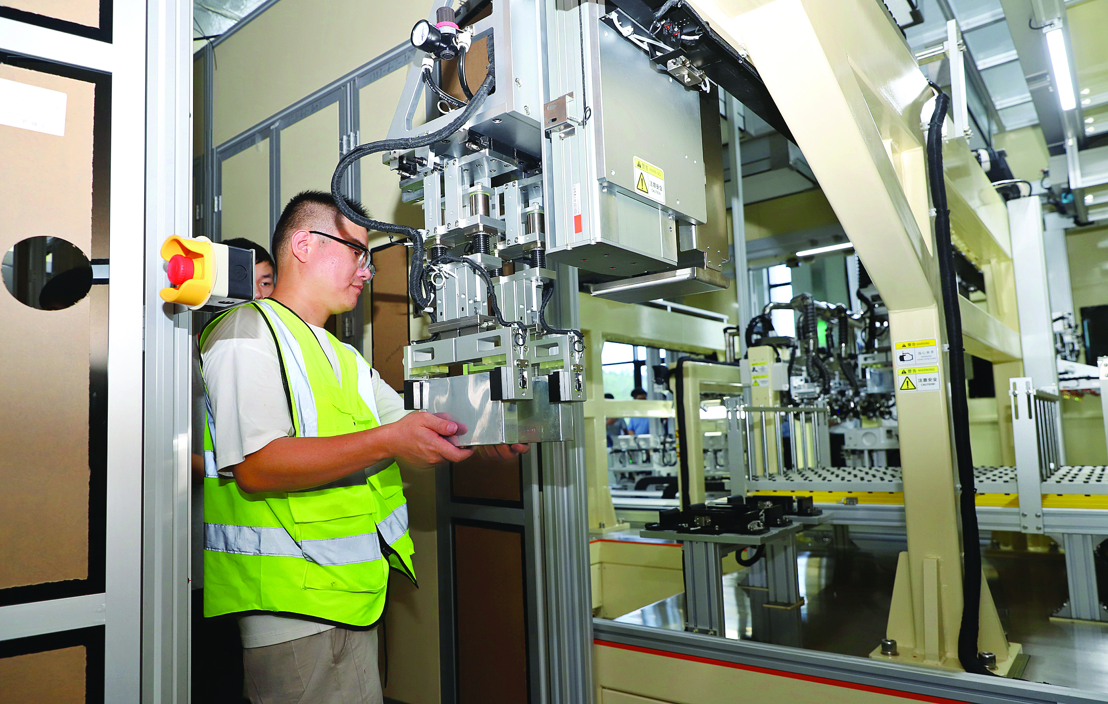 金源機(jī)器人公司通過自研AI機(jī)器人技術(shù),實(shí)現(xiàn)“用機(jī)器人生產(chǎn)機(jī)器人電池”;葜萑?qǐng)?bào)記者鐘暢新 攝