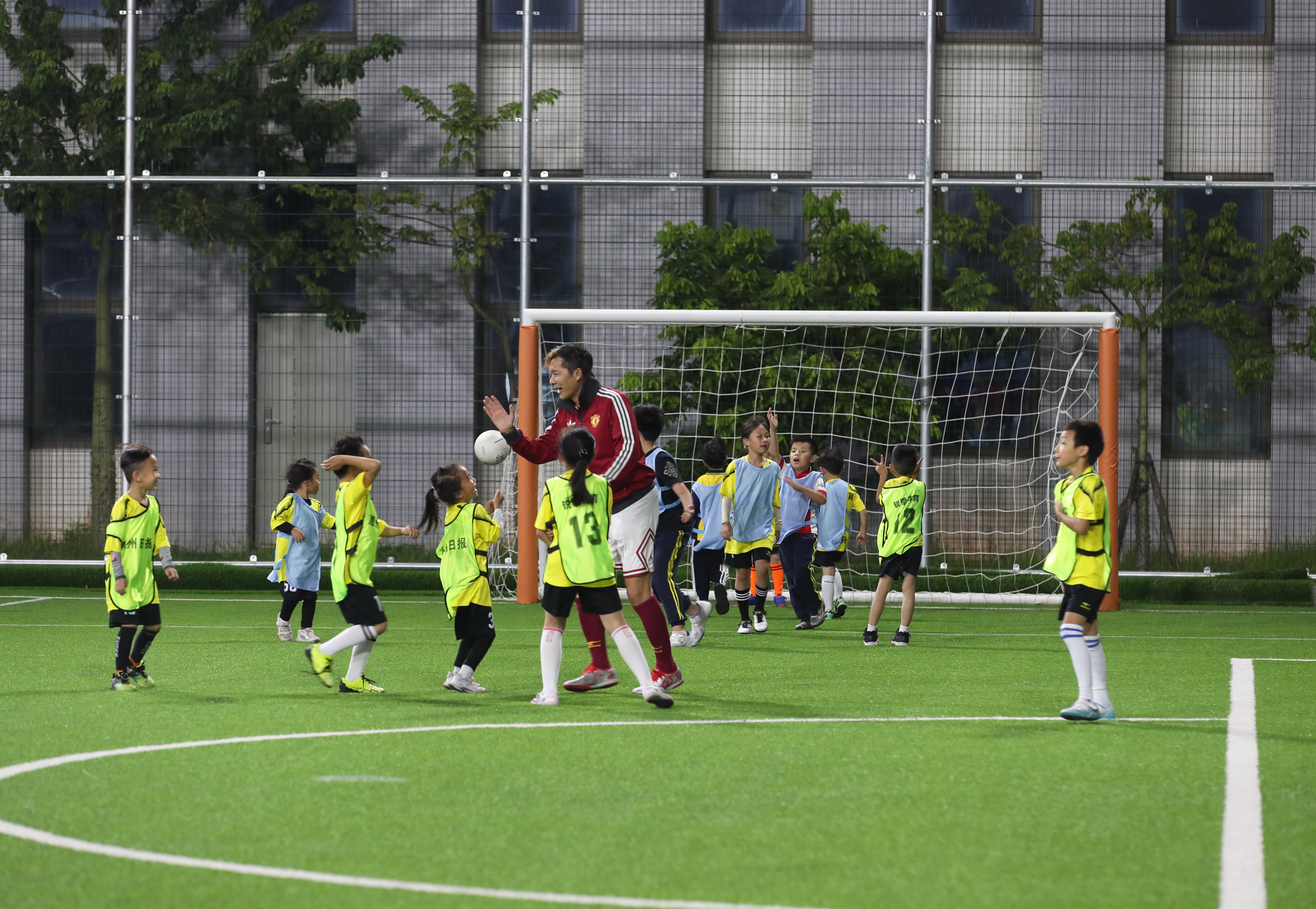 池明華現(xiàn)場(chǎng)指導(dǎo)小球員;葜萑?qǐng)?bào)記者鐘暢新 攝