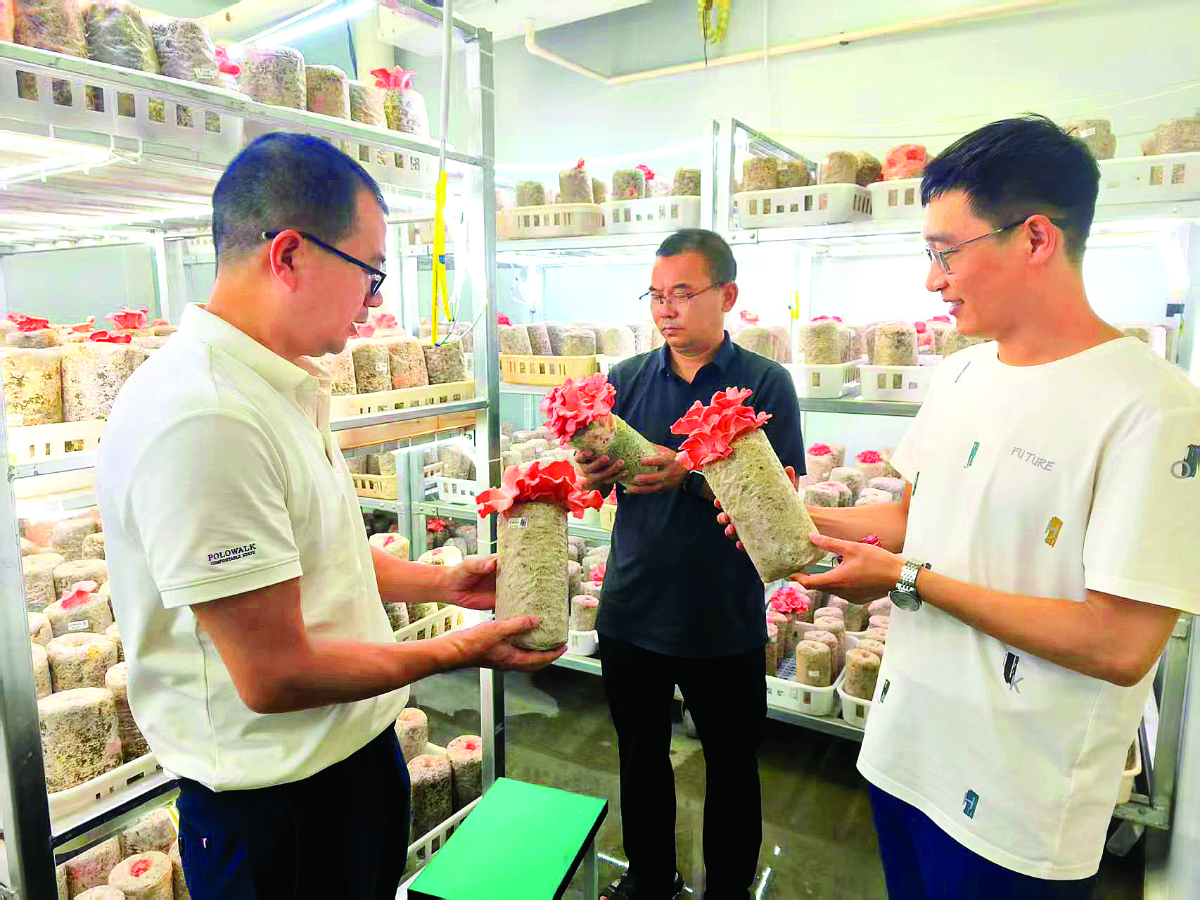 大亞灣霞涌上角村強(qiáng)村公司利用“棚上發(fā)電、棚下種菇”帶動村民增收。 圖片由上角村強(qiáng)村公司提供