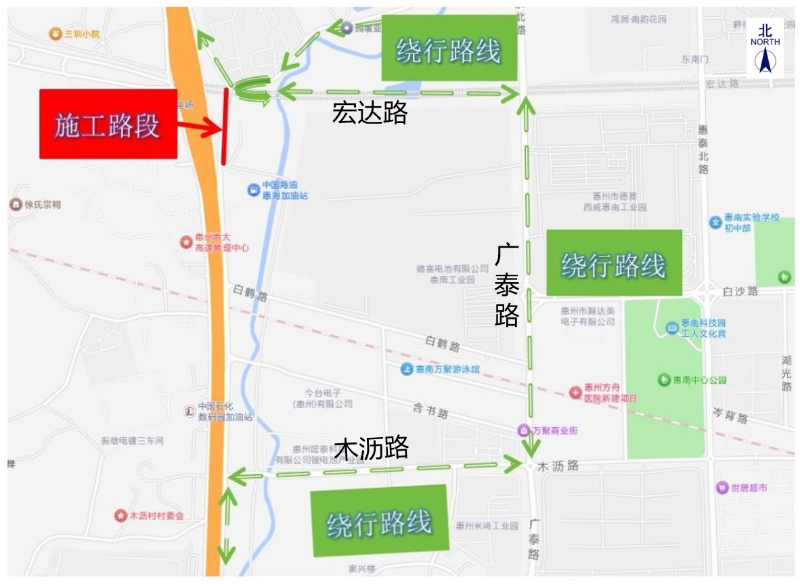惠澳大道東線(宏達(dá)路-木瀝路段)臨時(shí)交通管制示意圖(惠州交管部門(mén)提供)
