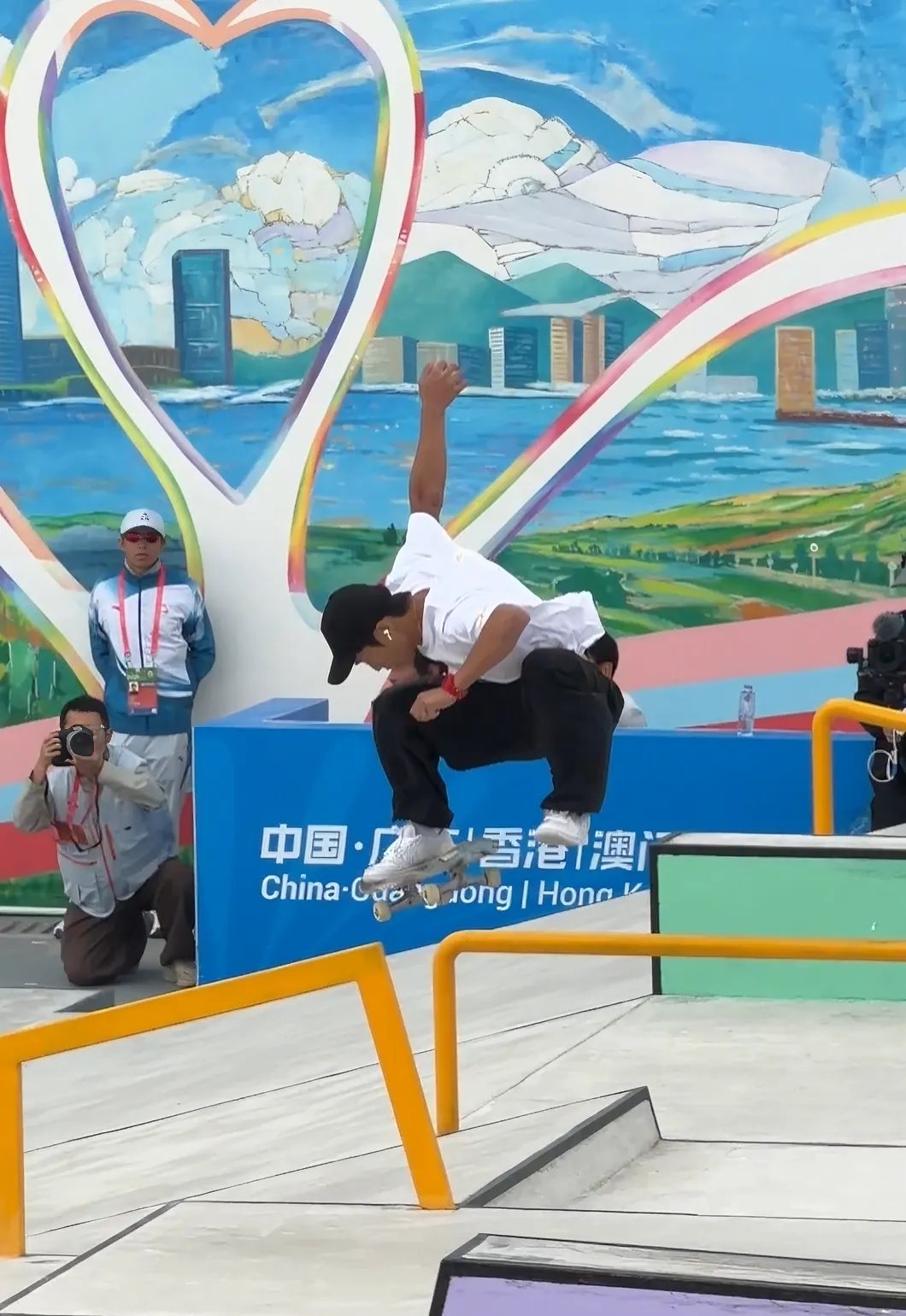 廣東隊(duì)的惠州選手潘家杰拿下男子街式項(xiàng)目冠軍。
