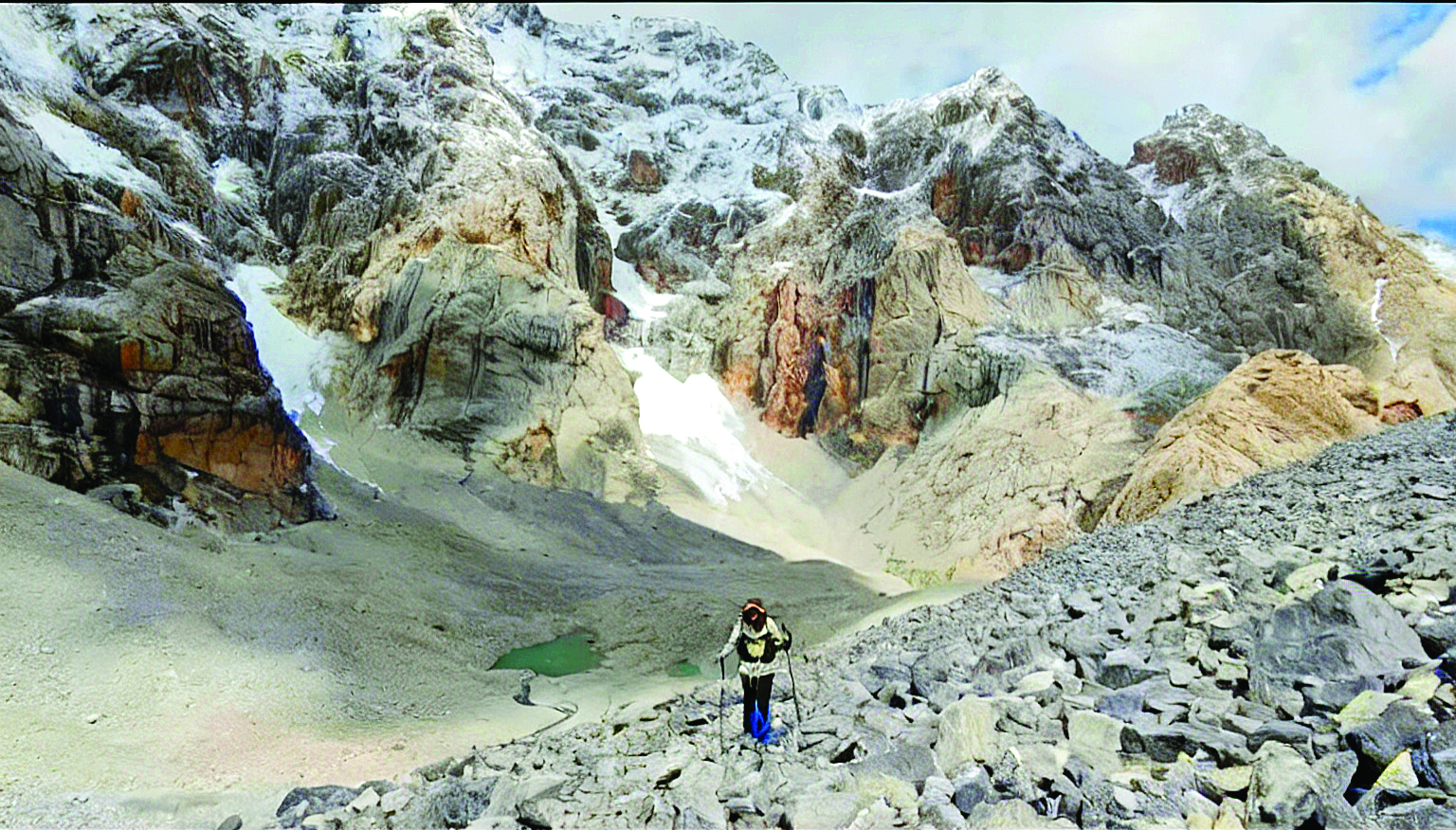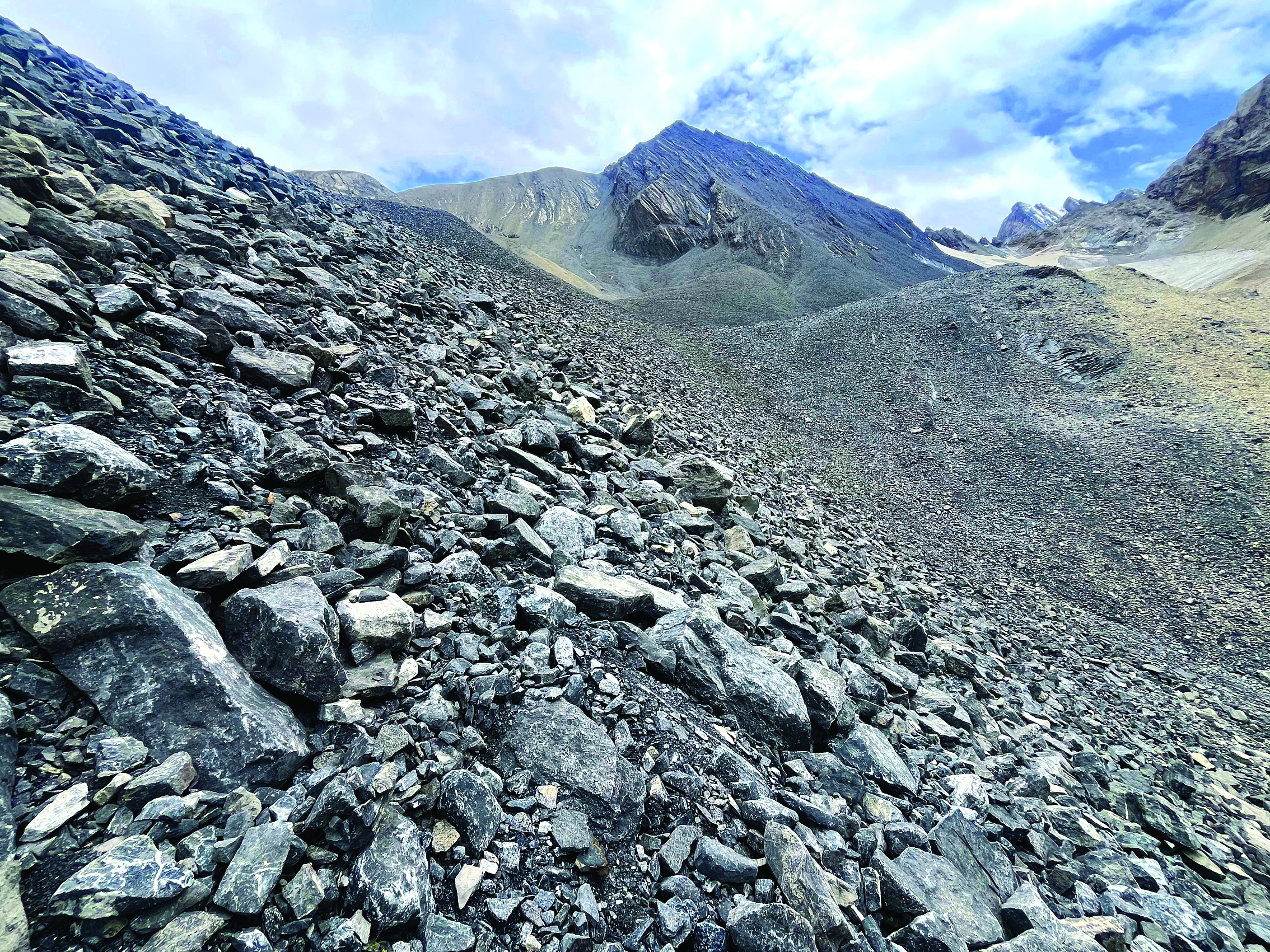 三年后的2025年7月9日,深圳的徒步愛好者郭先生與驢友踏上烏孫古道之旅。當日下午,翻越海拔3820米的阿克布拉克達坂后,郭先生誤打誤撞走進天堂三湖旁的一片碎石陡坡,這個地方正是丘女士當年遺失手機的區(qū)域。