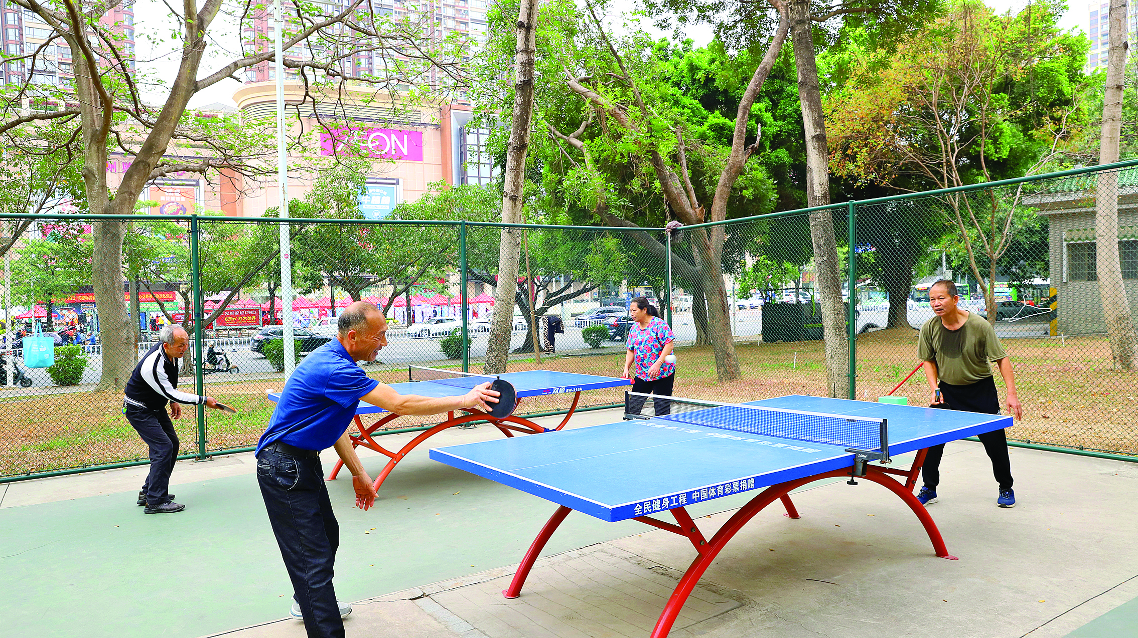市民在東平公園打乒乓球。