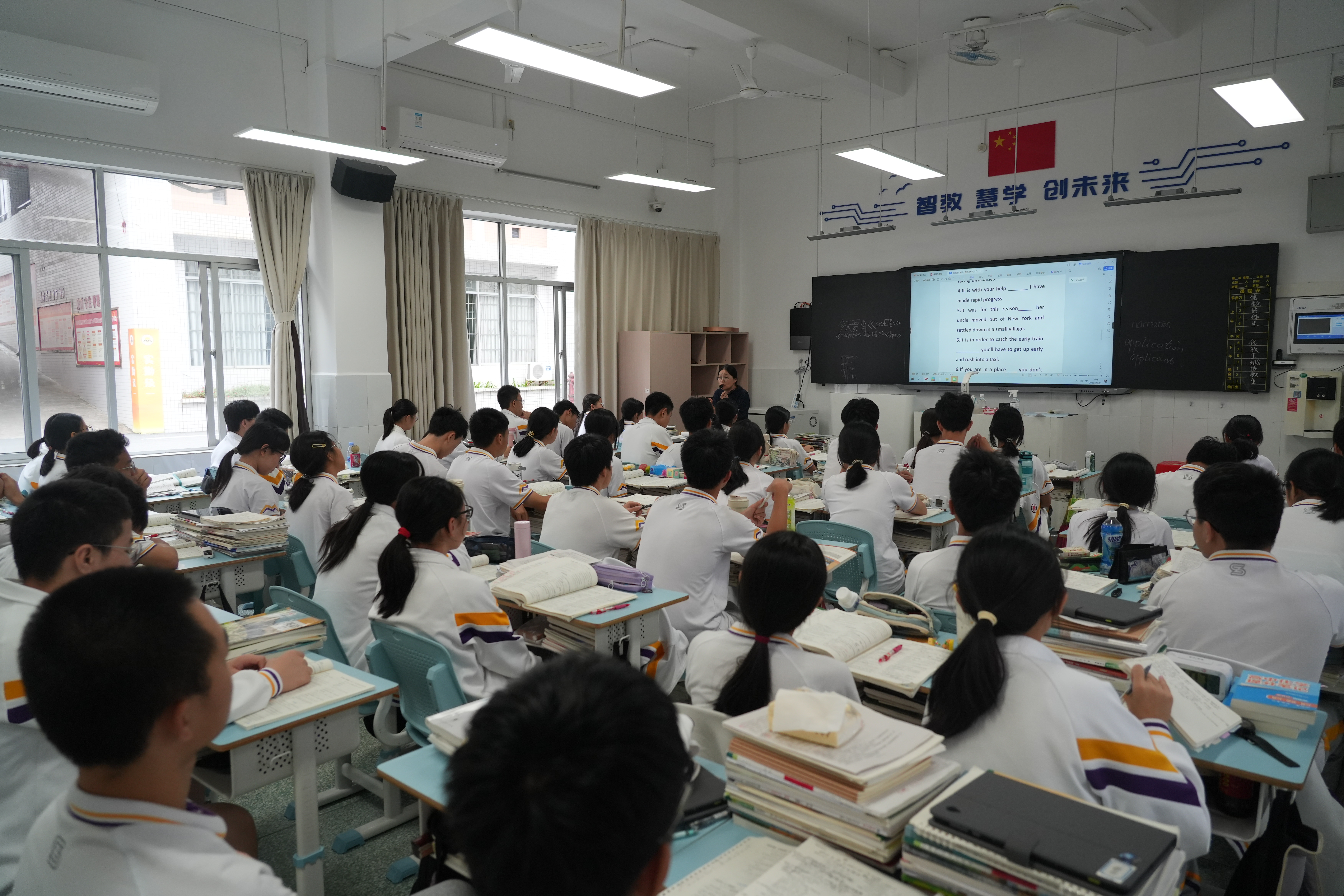 走進(jìn)市實(shí)驗(yàn)中學(xué),校園里的宿舍樓外墻已翻新為淺黃色,走廊地磚換成防滑磨砂材質(zhì),新?lián)Q的柜子和床提升了學(xué)生幸福感;訊飛智能班已投入使用,學(xué)生人手一臺(tái)平板,可實(shí)現(xiàn)與黑板的交互式教學(xué)。