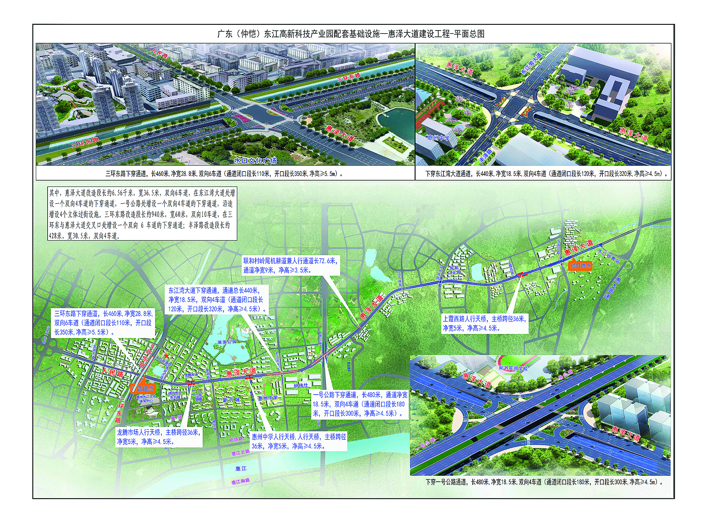 三條下穿通道將成為疏通關(guān)鍵交叉口的“主力軍”。它們分別位于:三環(huán)東路(人民路至惠澤大道路口)實(shí)現(xiàn)南北方向下穿;東江灣大道與惠澤大道交叉口實(shí)現(xiàn)東西方向下穿;在一號(hào)公路上跨惠澤大道處,惠澤大道自身將往東西方向下穿,巧妙解決高架橋下多條道路交叉的復(fù)雜問(wèn)題。