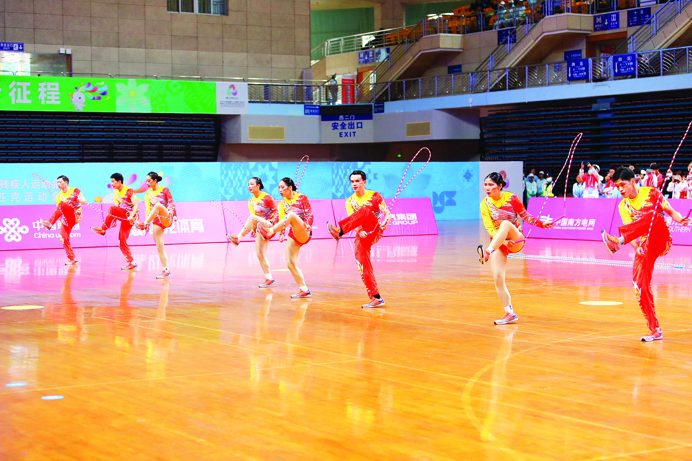殘?zhí)貖W會(huì)跳繩(大眾)項(xiàng)目視力組集體花樣賽現(xiàn)場。