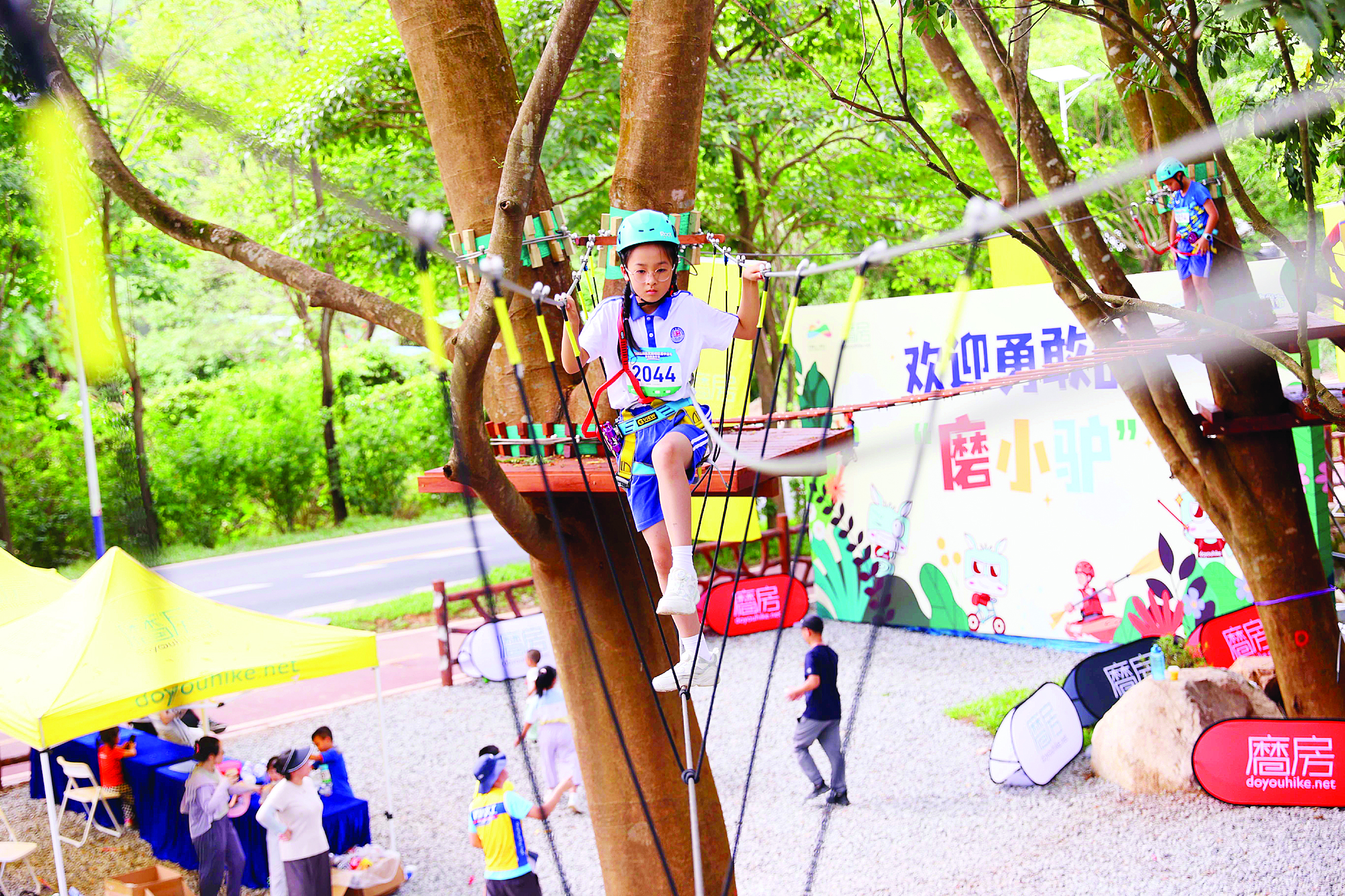 小朋友在磨房戶外運動中心玩叢林穿越項目;葜萑請笥浾邨罱I(yè) 攝