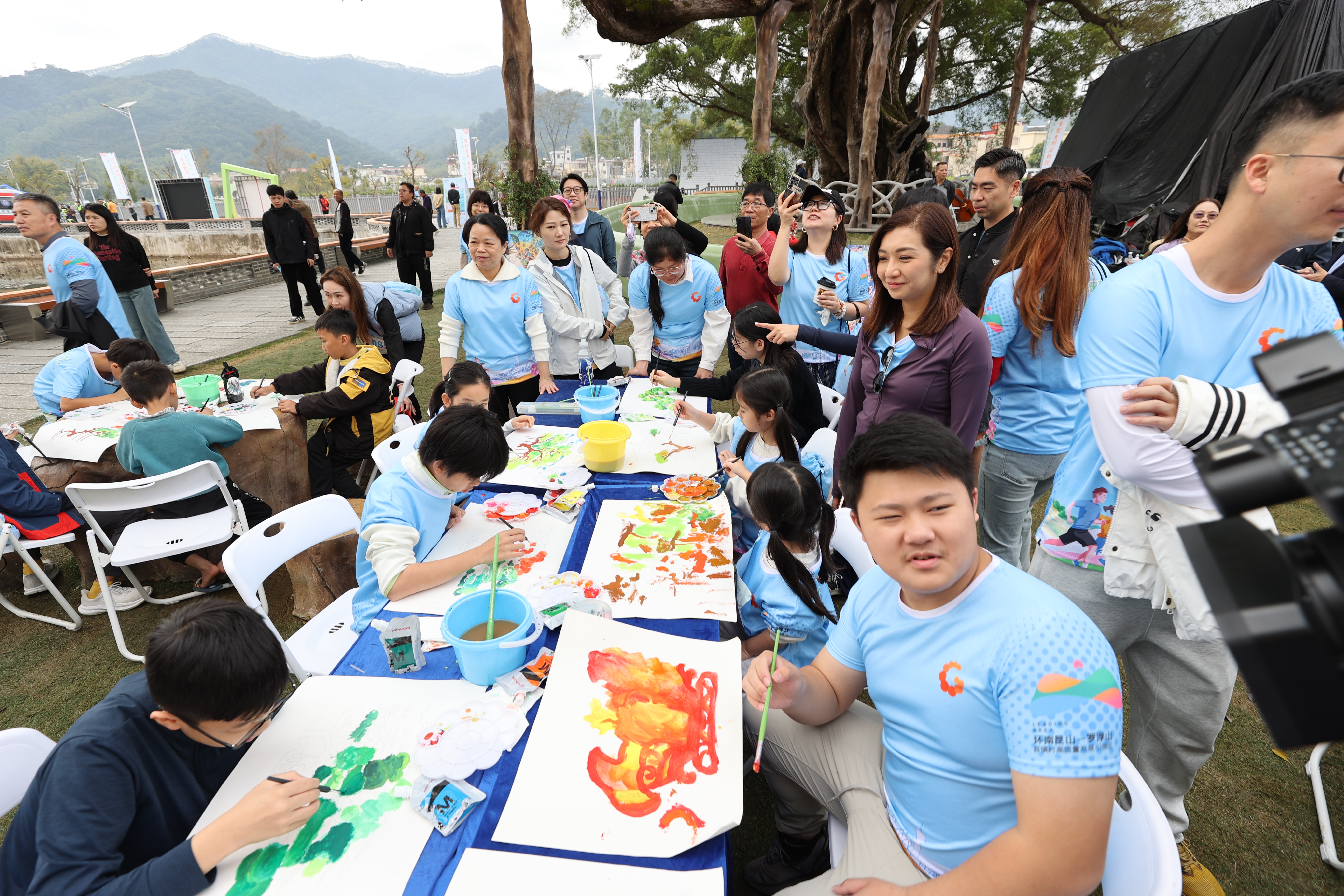 上午9時(shí)30分,位于218最美旅游公路的惠州龍門(mén)千年古榕驛站廣場(chǎng)上人頭攢動(dòng)。近1000名港澳臺(tái)僑青年及統(tǒng)一戰(zhàn)線(xiàn)各界代表人士匯聚于此,鮮艷的運(yùn)動(dòng)服裝映照著一張張青春臉龐。