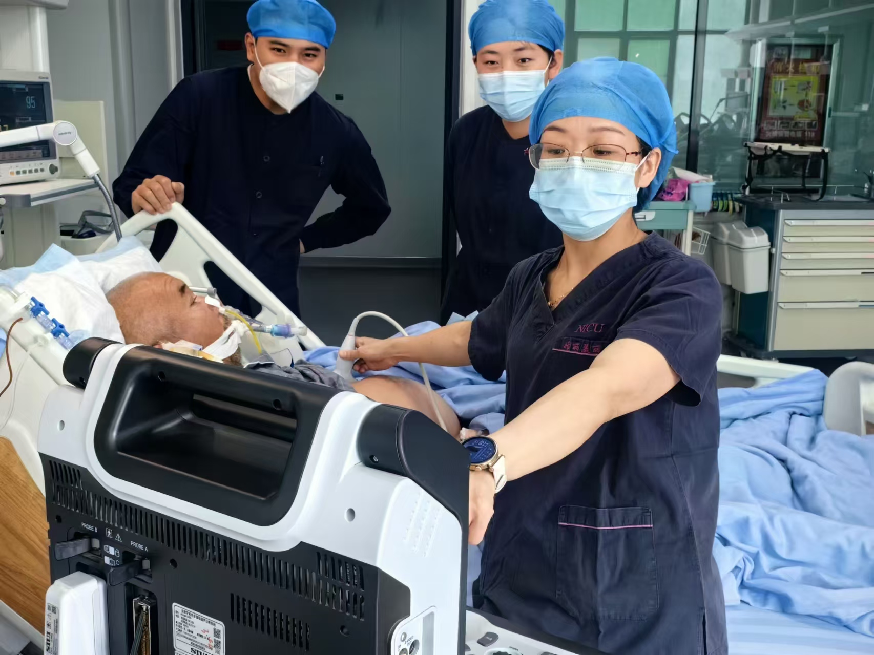 鄒錦秀(右一)在進(jìn)行床旁重癥超聲示教。