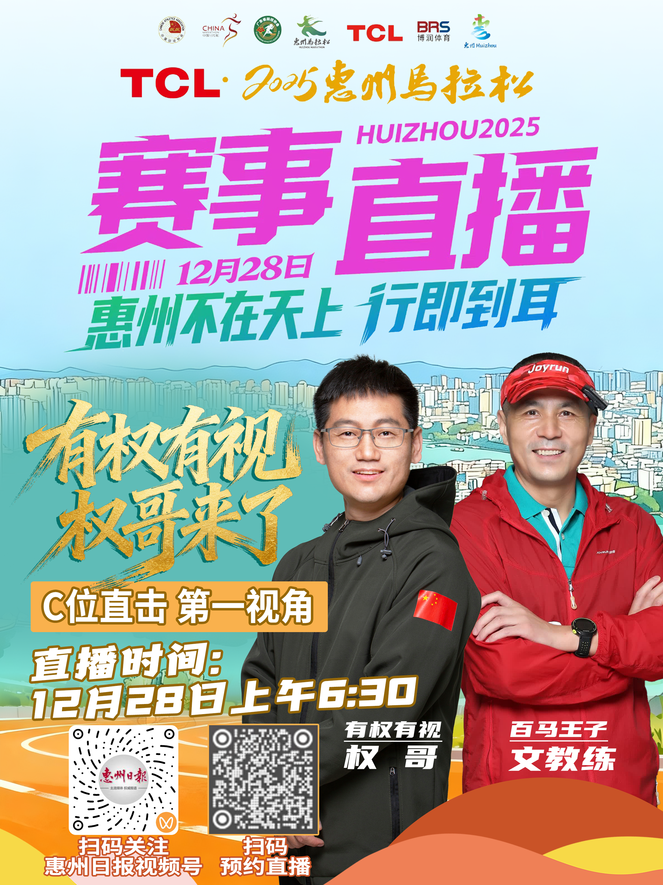12月28日7:30,TCL·2025惠州馬拉松將正式鳴槍開(kāi)跑。為全景呈現(xiàn)賽事盛況,惠州日?qǐng)?bào)社精心部署,首次推出“四箭齊發(fā)”直播矩陣,通過(guò)多平臺(tái)、多視角、多形式為觀眾帶來(lái)沉浸式觀賽體驗(yàn)。