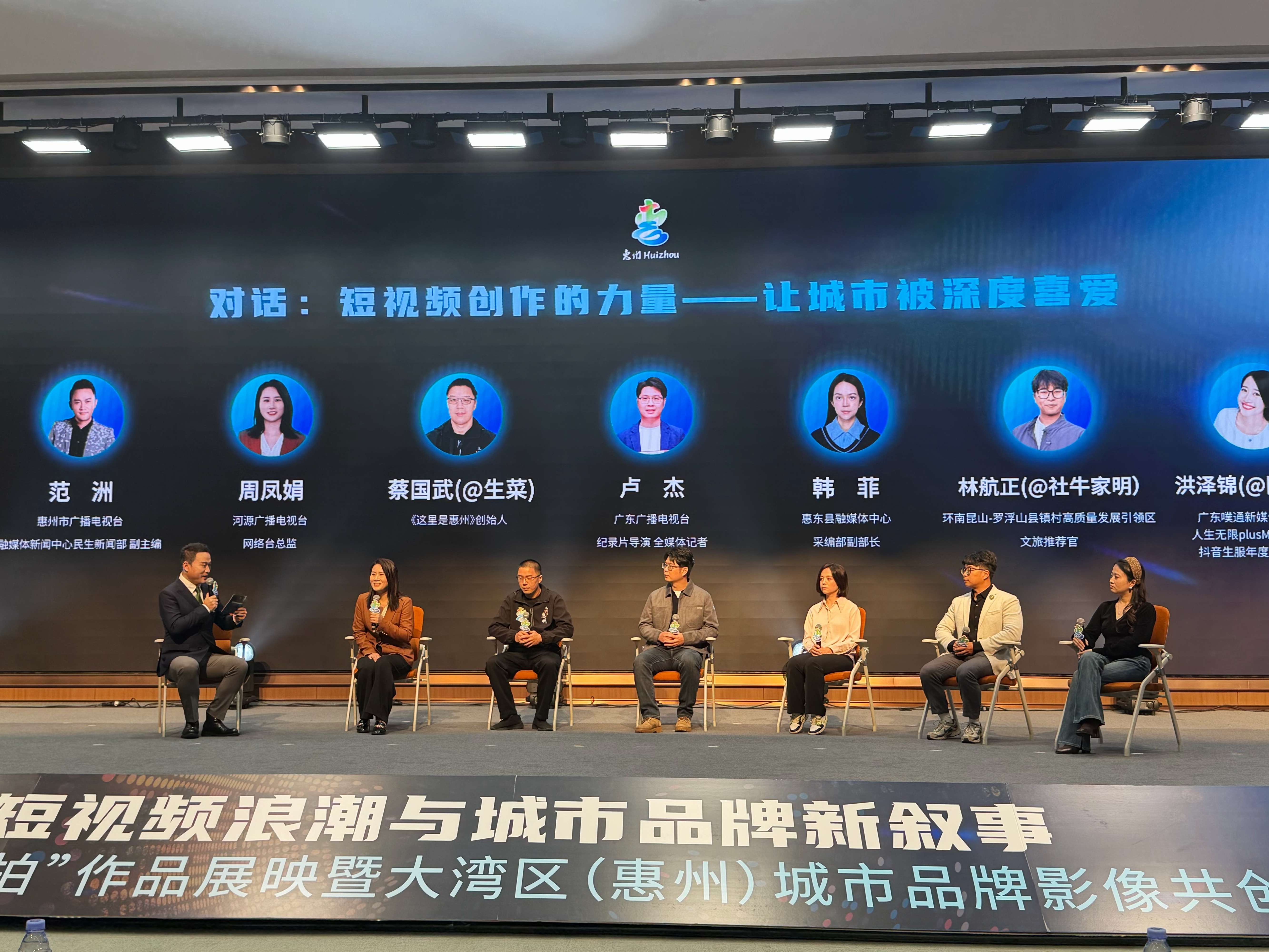 2025年12月30日,由省委網(wǎng)信辦、市委宣傳部指導(dǎo),市委網(wǎng)信辦、市互聯(lián)網(wǎng)行業(yè)黨委主辦,市廣播電視臺承辦的短視頻浪潮與城市品牌新敘事——“惠聚美好E起拍”作品展映暨大灣區(qū)(惠州)城市品牌影像共創(chuàng)交流活動在惠州天安國創(chuàng)中心舉行。活動在全面總結(jié)“惠聚美好E起拍”網(wǎng)絡(luò)短視頻征集活動成果的同時,正式發(fā)起“大灣區(qū)城市影像互拍計(jì)劃”,旨在以影像共創(chuàng)聯(lián)動粵港澳大灣區(qū)城市群,探索城市品牌傳播新路徑。廣東省委網(wǎng)信辦、惠州市委宣傳部相關(guān)負(fù)責(zé)人,深圳、肇慶、江門、中山、東莞、汕尾等多地網(wǎng)信部門代表、業(yè)界專家、優(yōu)秀創(chuàng)作者及媒體代表共聚一堂,共話短視頻時代的城市敘事創(chuàng)新。