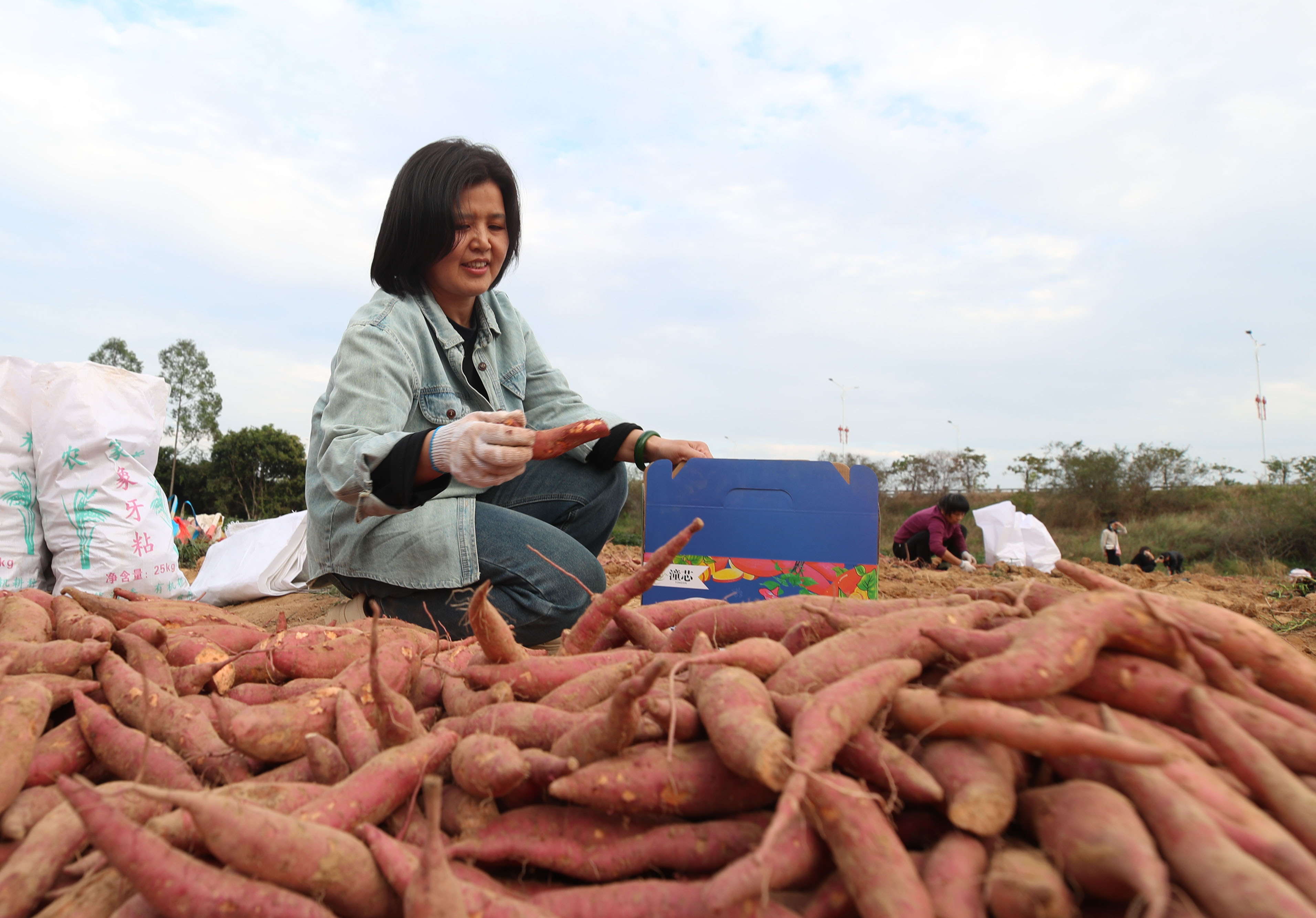 翟雪麗的紅薯田迎來了豐收。惠州日?qǐng)?bào)記者鐘暢新 攝
