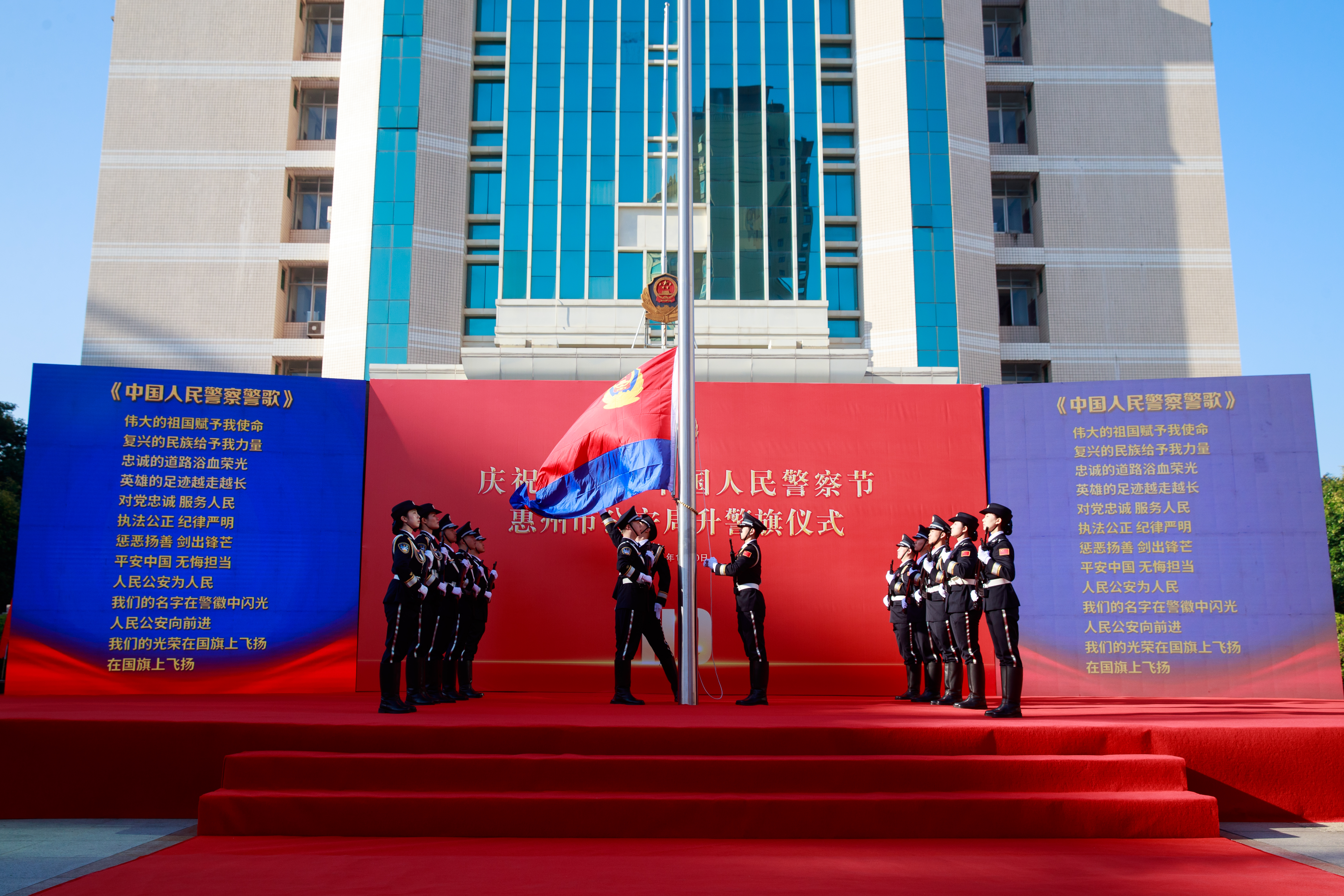 1月10日上午,惠州市公安局舉行升警旗儀式慶祝第六個(gè)中國(guó)人民警察節(jié)。