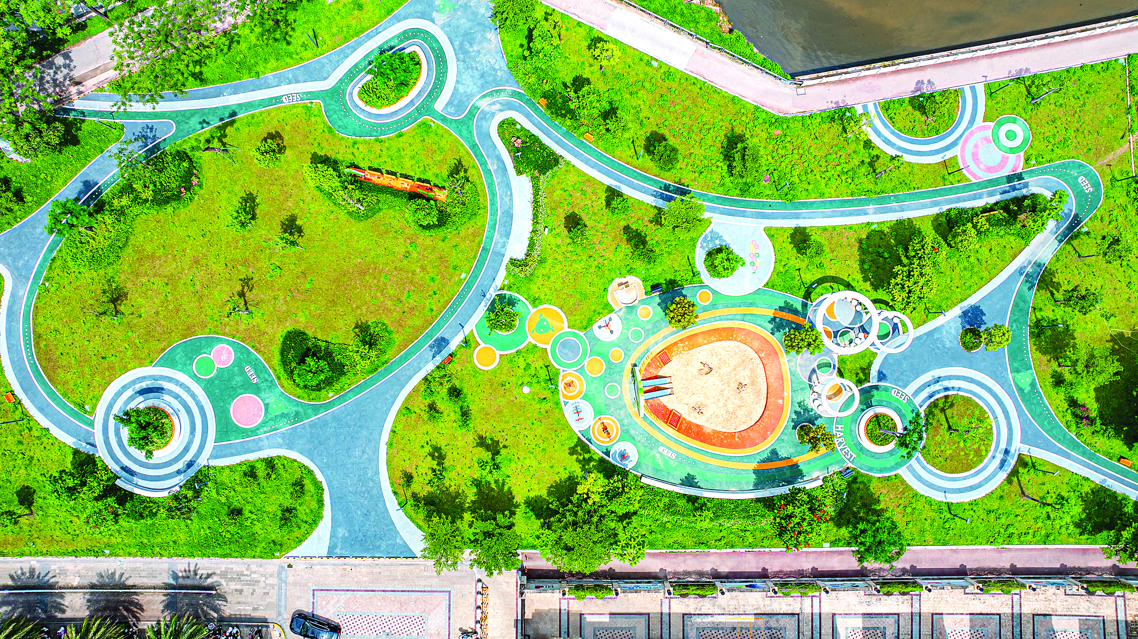 不止云博園,香榭山公園的靜謐綠洲、水口街道中心小學(xué)北側(cè)的“種子樂(lè)園”,都在訴說(shuō)著惠州利用閑置地、邊角地打造精品游園的民生實(shí)踐。香榭山公園原本綠地雜亂、設(shè)施破舊,改造后新建了彩色透水混凝土園路、登山步道和山頂休閑平臺(tái),增設(shè)了健身娛樂(lè)設(shè)施,夜幕降臨時(shí),庭院燈亮起,打造出一片溫馨休憩之地;“種子樂(lè)園”則以“植物種子”為主題,劃分入口區(qū)、兒童活動(dòng)區(qū)和草坪活動(dòng)區(qū),融入種子IP元素,成為孩子們探索自然、快樂(lè)成長(zhǎng)的戶外科普?qǐng)@地。這些“一園一特色、一園一主題”的口袋公園,正成為惠州人身邊的幸福小港灣。