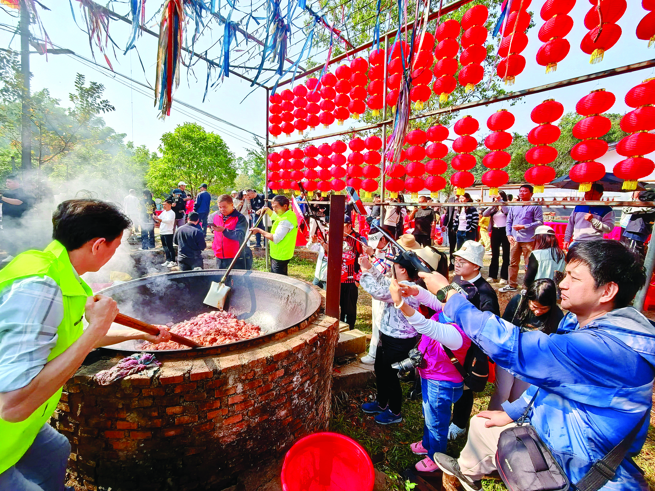 1月18日上午,1000多人齊聚惠州市山里頭農(nóng)場(chǎng),參加熱鬧喜慶的年味盛宴——全豬宴。活動(dòng)現(xiàn)場(chǎng)除了惠州市民,還有不少?gòu)纳钲、東莞等周邊城市趕來(lái)的游客。記者了解到,主辦方特意將100個(gè)專屬席位留給惠州環(huán)衛(wèi)工人,致敬“城市美容師”。