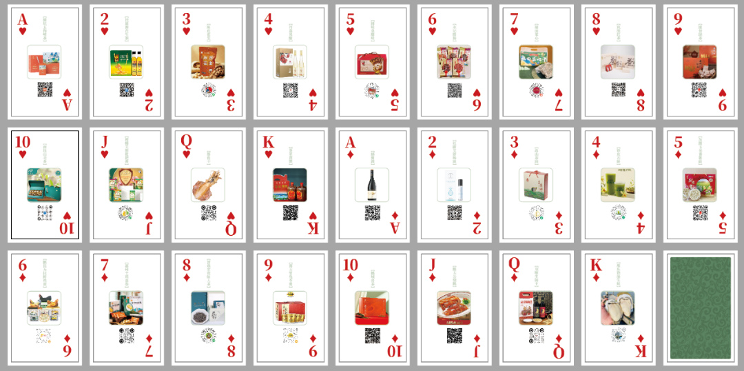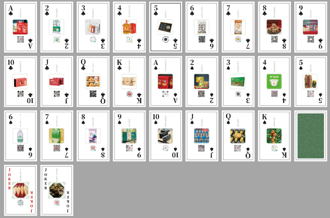 這副文創(chuàng)紙牌以惠州特色農(nóng)產(chǎn)品為絕對(duì)主角,54張牌對(duì)應(yīng)54種本土優(yōu)質(zhì)農(nóng)產(chǎn),糧油干貨、生鮮水產(chǎn)、醇香茶飲、解饞零食等品類全覆蓋,每一張都是獨(dú)屬于惠州的農(nóng)產(chǎn)品名片。紅桃間藏著咸香醇厚的矮陂梅菜,黑桃里盛著回甘悠長(zhǎng)的羅浮山茶,梅花間躺著粒粒飽滿的南昆山大米,方塊中裹著各式地道惠州滋味,鮮活的農(nóng)產(chǎn)圖景躍然牌面,視覺(jué)盛宴盡顯惠州農(nóng)產(chǎn)品的豐富與鮮美,讓舌尖上的惠州觸手可及。