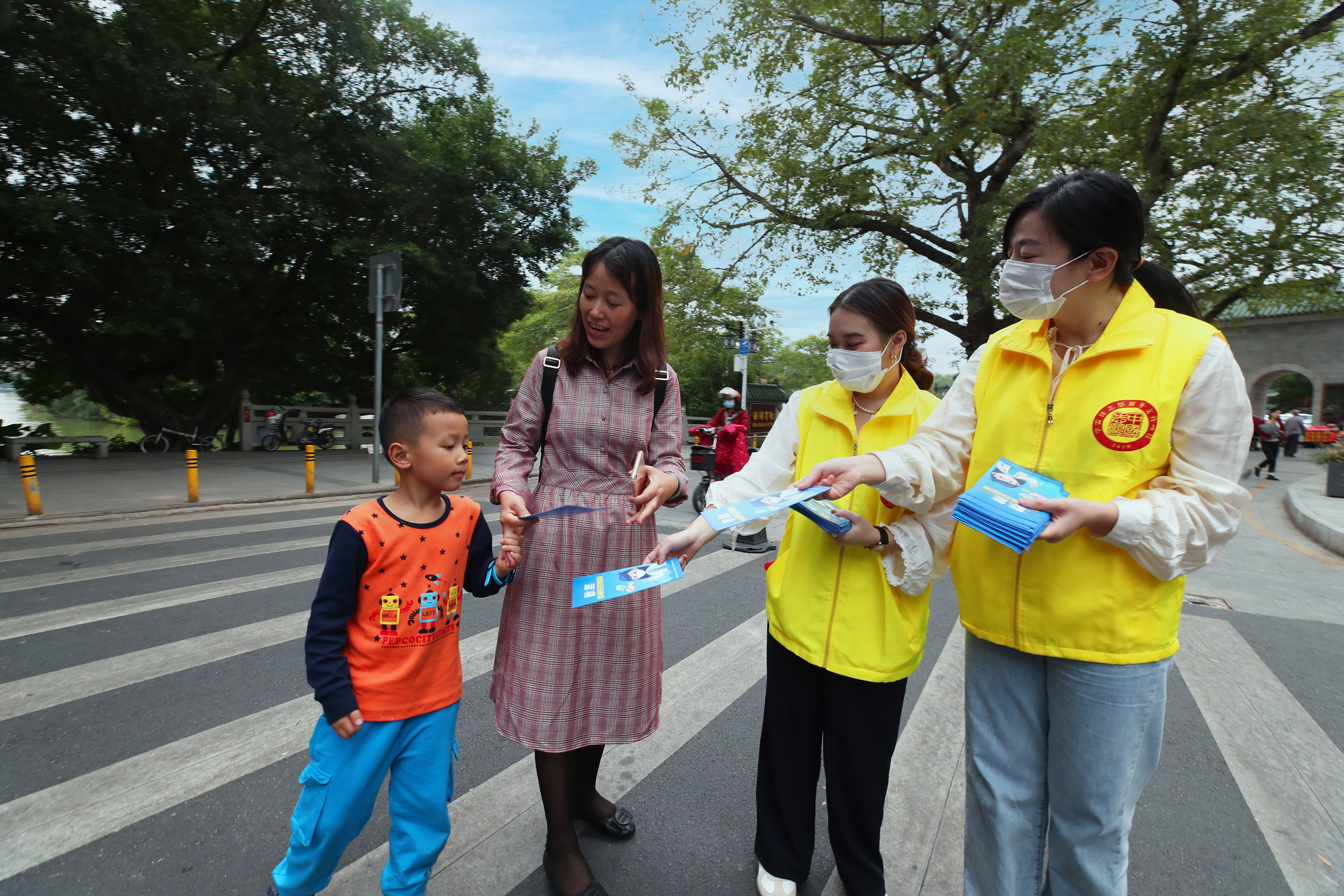 志愿者在西湖景區(qū)為游客服務。