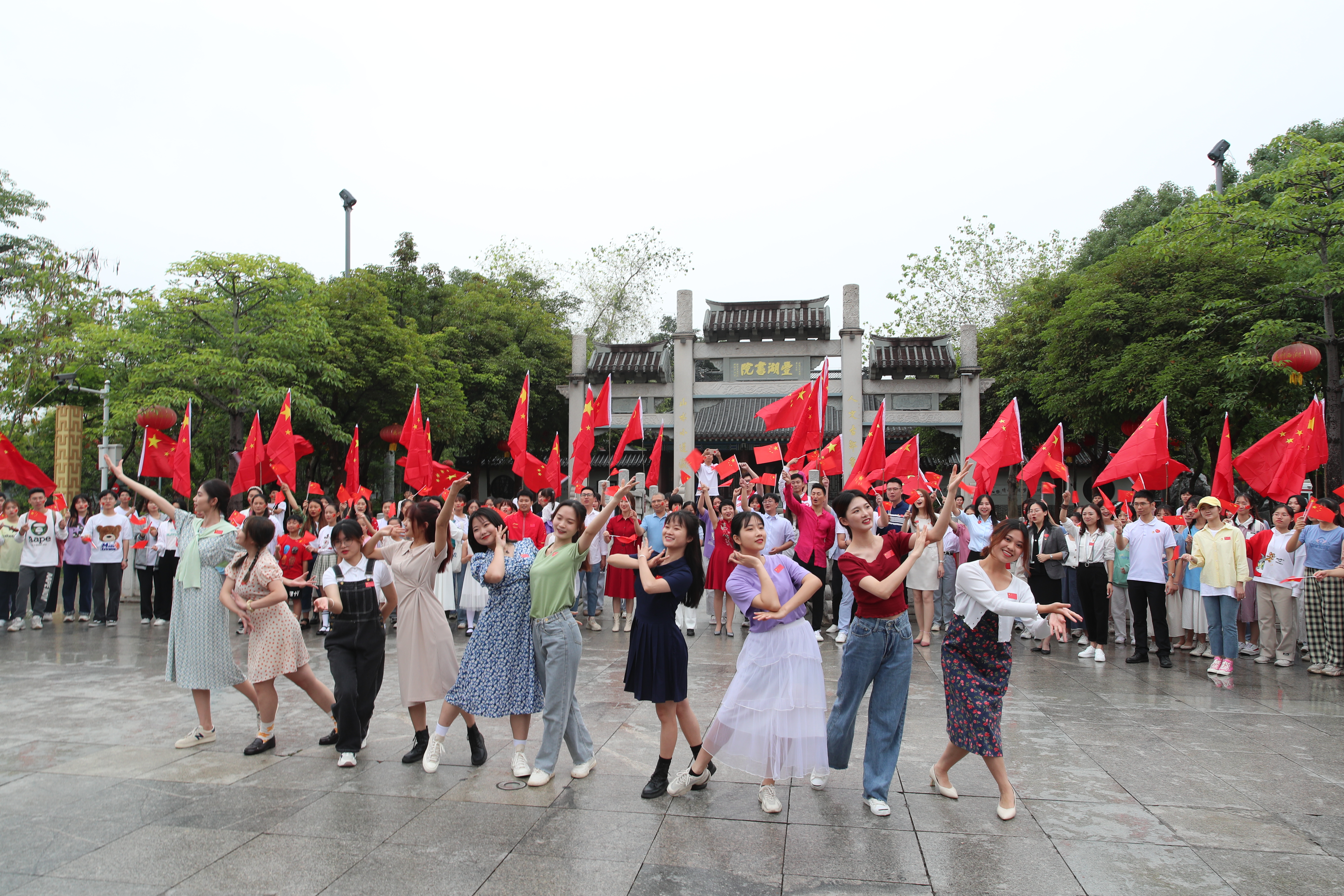 在市區(qū)豐湖書院舉行的“五四”快閃活動。