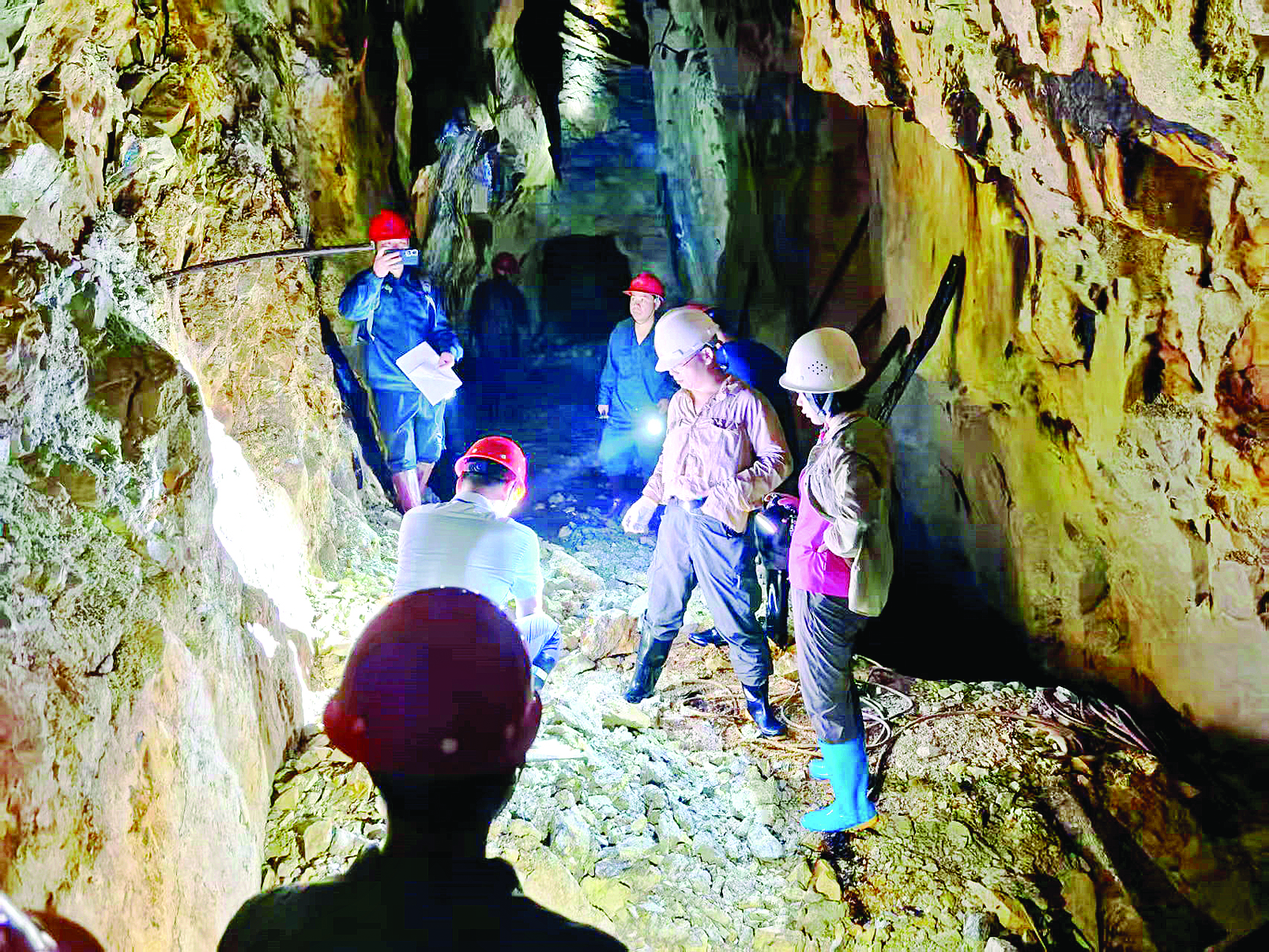 工作人員在博羅利山鐵礦項目研究成礦潛力及下一步勘查工作。