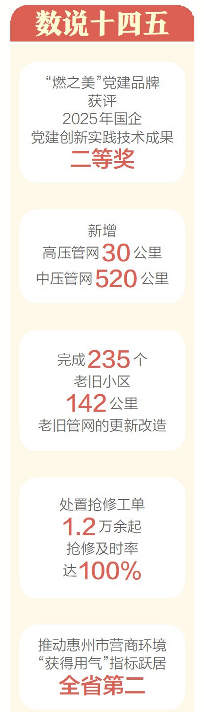一組組亮眼數(shù)據(jù),一項項務實成就,清晰勾勒出惠州燃氣“十四五”期間高質(zhì)量發(fā)展的奮進軌跡,生動詮釋了與城市發(fā)展同頻共振、與市民期盼同向而行的責任擔當。