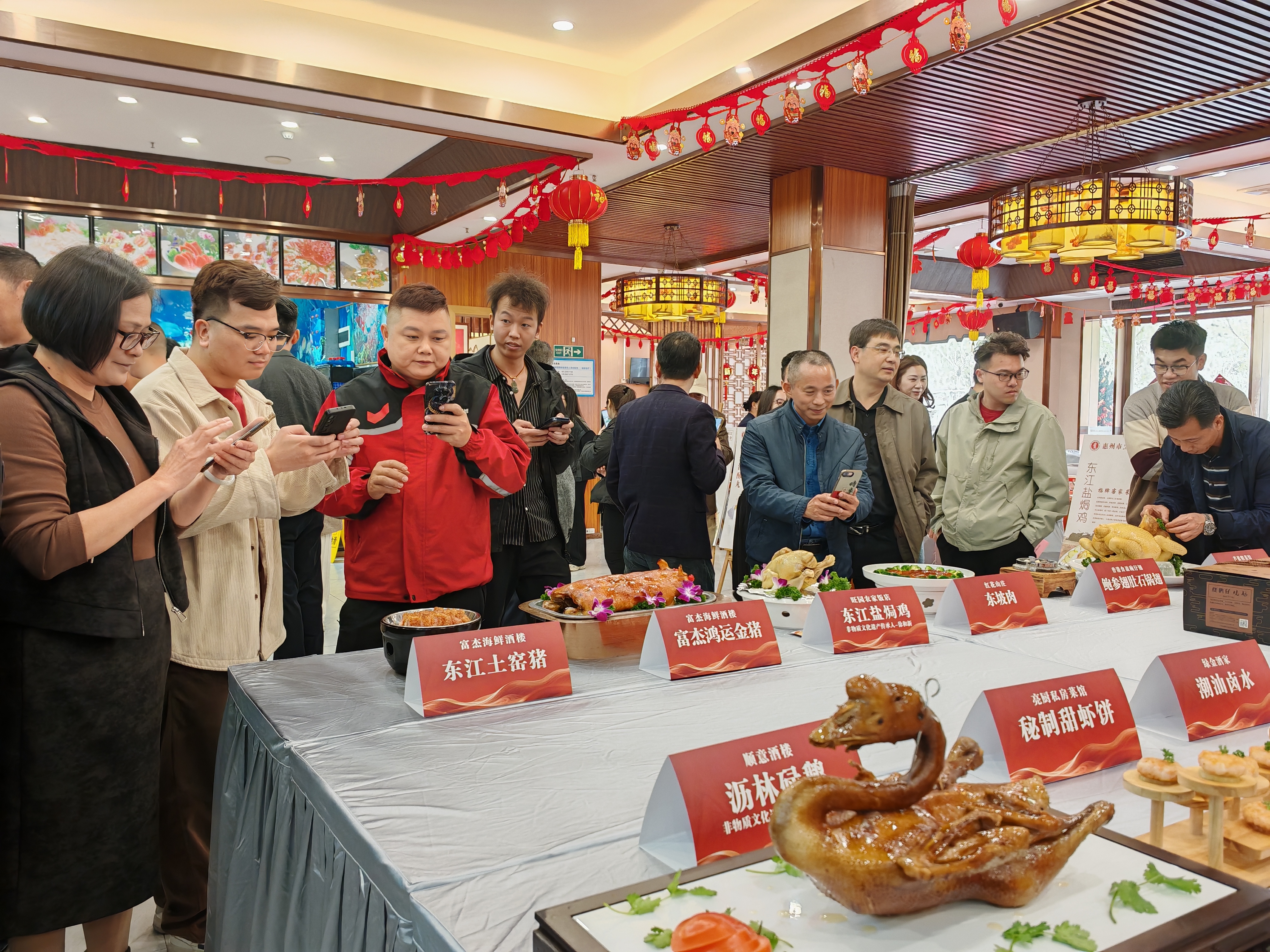 活動(dòng)現(xiàn)場(chǎng)設(shè)置了惠州市星級(jí)粵菜師傅成果展示區(qū),東江鹽焗雞、東江土窯豬、東坡肉等地道東江菜擺盤(pán)精致。