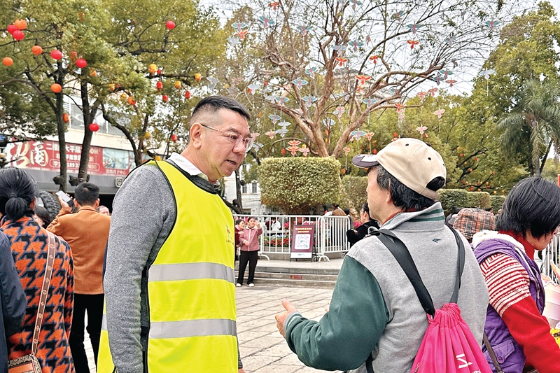 大年初一清晨,惠州市文明旅游志愿服務(wù)隊隊長林大康已身著綠馬甲出現(xiàn)在惠州西湖景區(qū)東大門前,開啟了他春節(jié)期間的值守之旅。