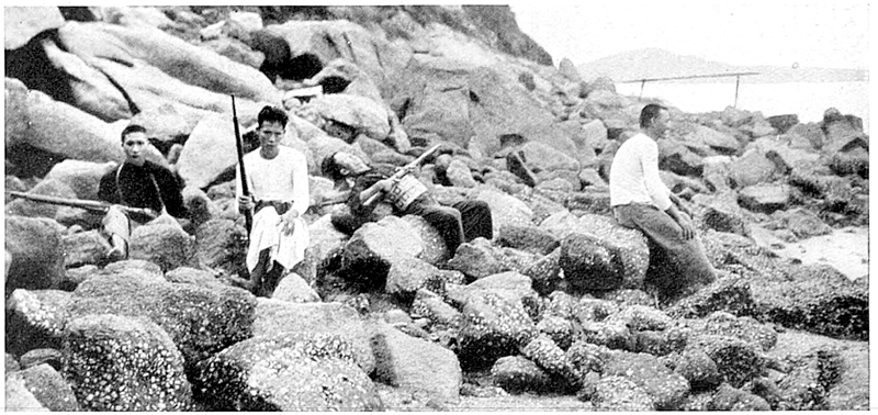 大亞灣海盜的駐地飯羅崗(今惠東縣稔山鎮(zhèn)范和村),手持槍械的海盜從海上巡邏歸來,攝于1931年。