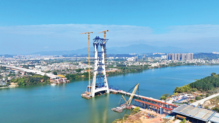 “我的一項(xiàng)重要工作是設(shè)備調(diào)控,通常是高空作業(yè)!彼谓▊フf。眼下,172米高的塔柱矗立在東江中間,正在進(jìn)行吊裝!鞍踩肋h(yuǎn)是第一位,必須確保每一步都精準(zhǔn)、高效!