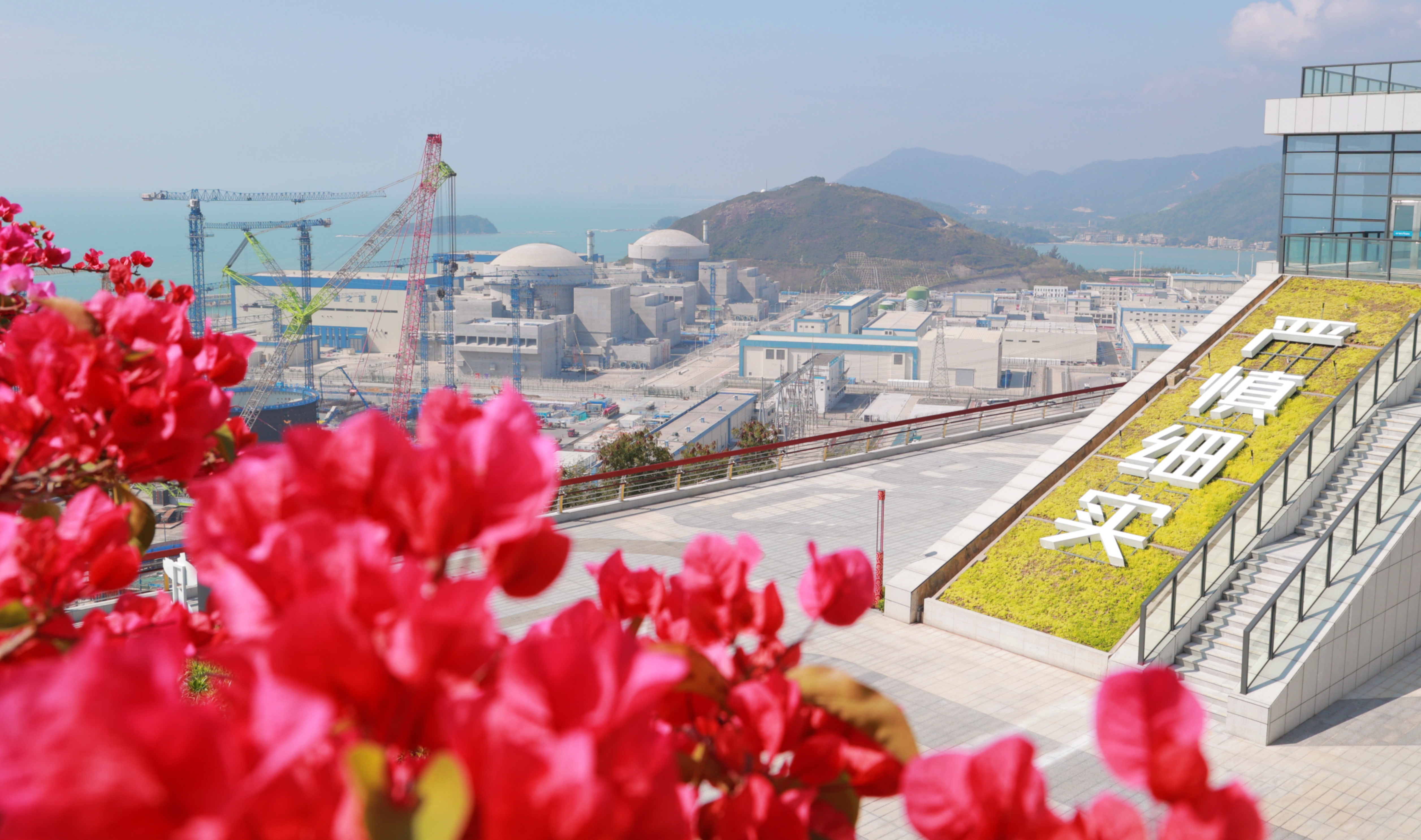 春日不遲,花開正好。登臨太平嶺核電108平臺,一幅現(xiàn)代工業(yè)與自然山海交融的壯麗畫卷在眼前鋪展:左手邊,“華龍一號”核電機組建設(shè)現(xiàn)場塔吊林立、工程車輛穿梭有序,大國重器的雄姿在陽光下熠熠生輝;右手邊,碧波萬頃海天一色,陽光的照射在海上倒映出波光粼粼,如同光影畫境。這是硬核科普與聽濤觀海共鳴的生動寫照,科技的力量與自然的壯美在這里和諧共生。