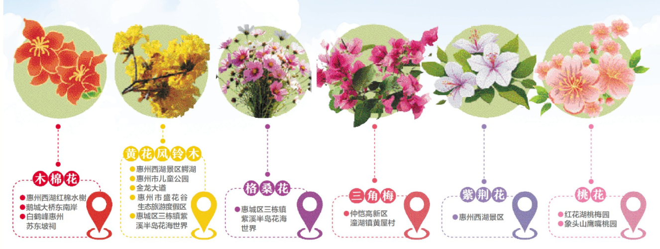 一樹紅裝的木棉,明艷高潔的黃花風(fēng)鈴木,燦若云霞的紅花、紫花羊蹄甲,一望無垠的格;ê!阂鉂u濃,萬物競(jìng)發(fā),惠州大地正被繽紛花色溫柔浸潤(rùn),又到踏青賞花好時(shí)光。這份春日賞花指南,邀你走進(jìn)惠州最美季節(jié)。